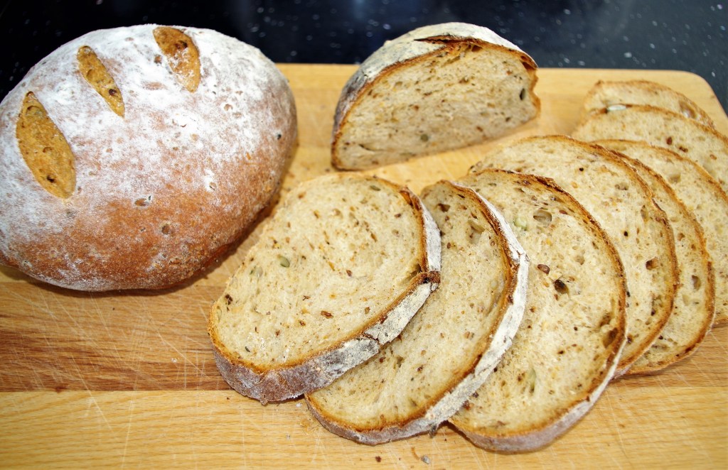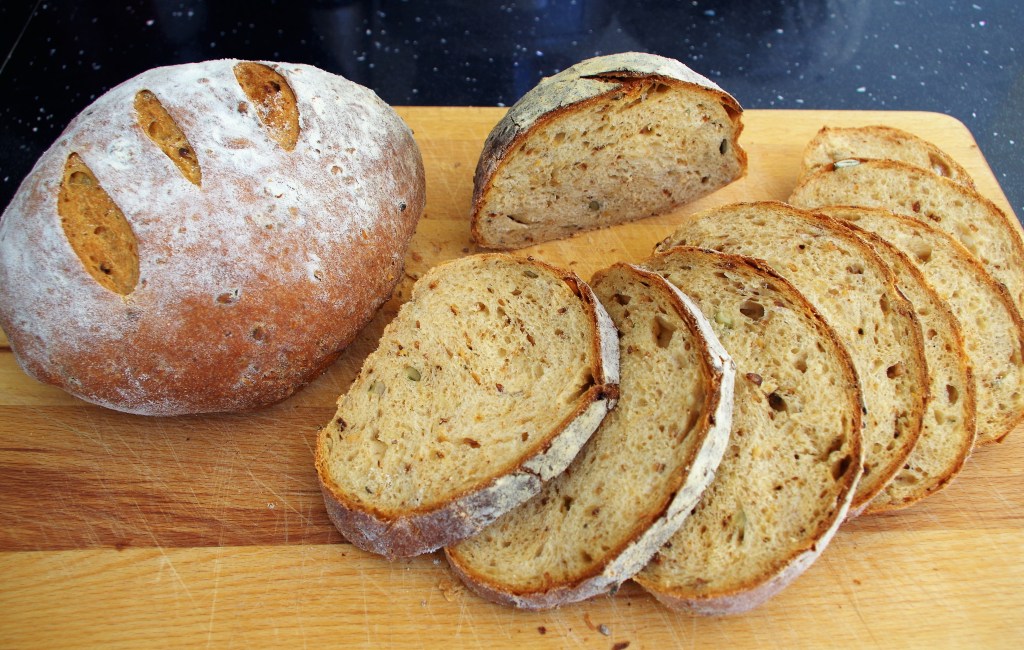Here’s a great “healthy” bread that’s packed with flavour and has a very nice soft texture. It’s very versatile too, as it’s equally good with sweet items like jam or honey as well as savoury food – scrambled eggs for example.