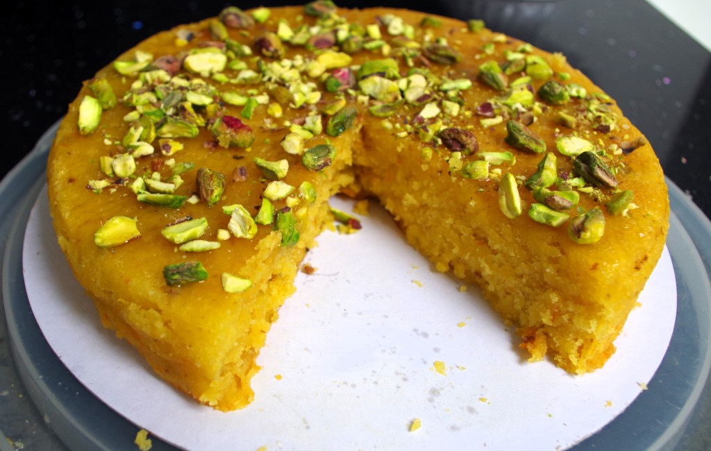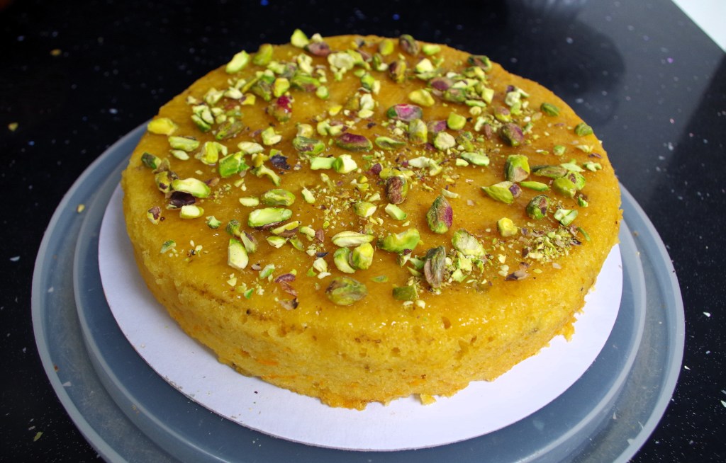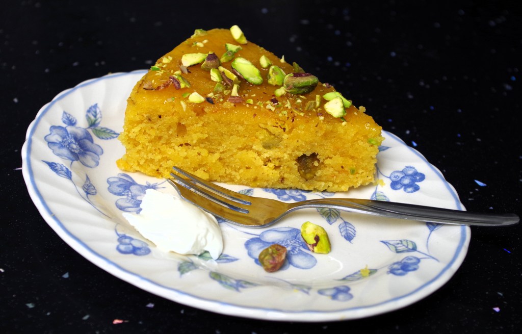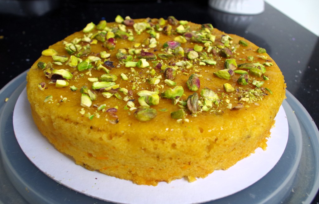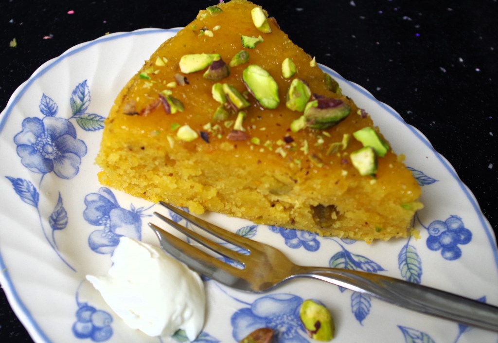 This is an extremely moist and tasty cake. The polenta and pistachios give it a lovely distinctive texture and the orange flavour comes through well.