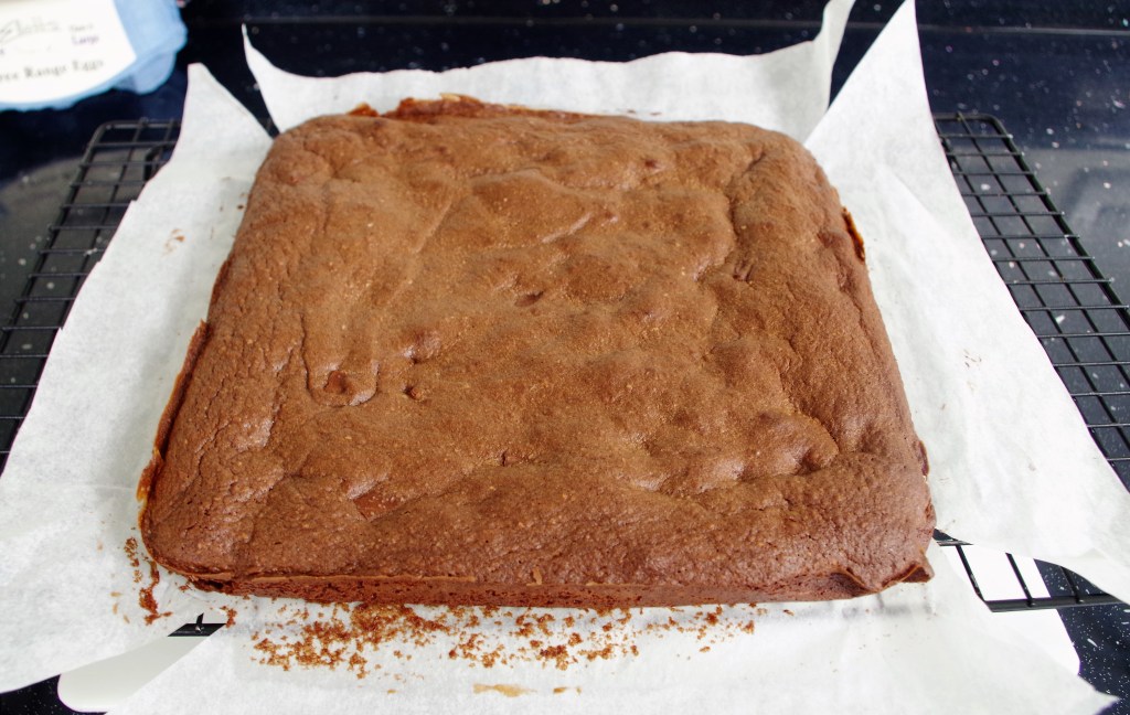 5. You could just cut the slab and serve the brownies as they are, However, if you want to add a ganache it may be worth inverting the slab to use the flatter surface.