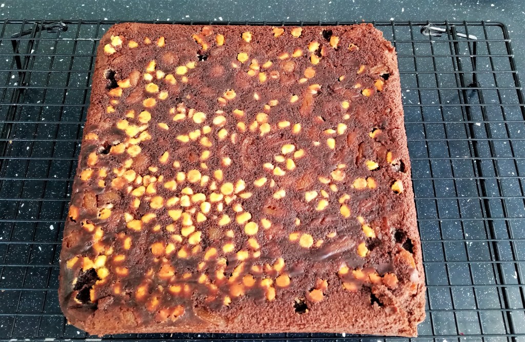 These are the softest, yummiest, squidgyest, lusciousest brownies I’ve made for a long time. Maybe it’s the extra chocolate that does it, or the macerated apricots, or maybe my brilliant baking technique. Mmm, I think the chocolate and apricots have to take the credit. But, whatever the reason, they’re excellent.