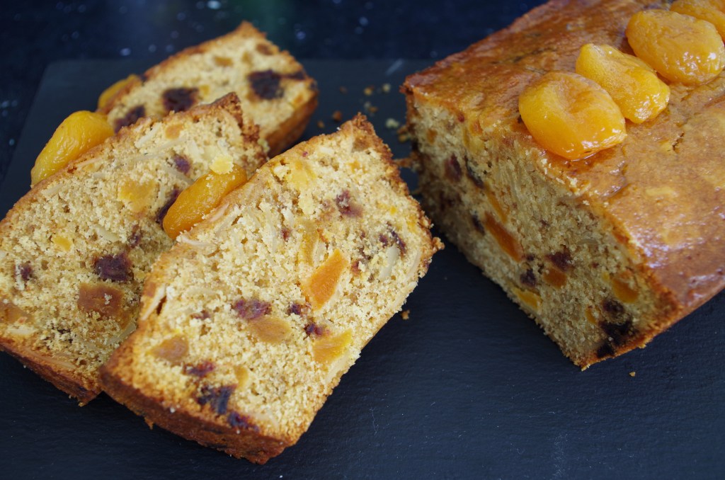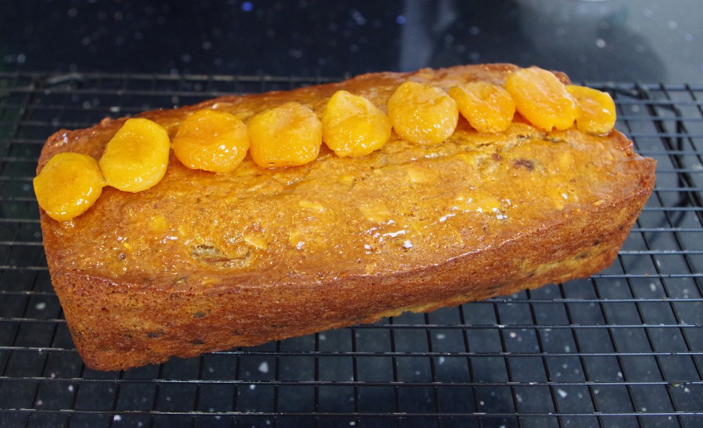 6. To decorate, brush the top with warmed & sieved apricot jam and add the reserved apricots (+ dates and nuts maybe). Brush again with more jam.