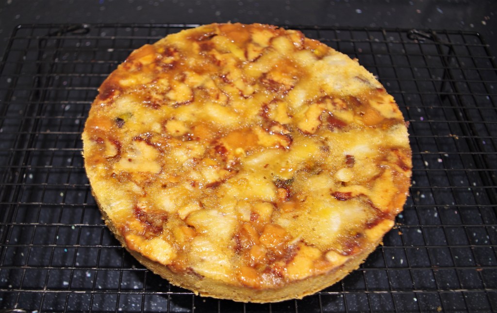 5. Cool in the tin for 5 – 10 minutes then run a knife around the edge to loosen it and turn out onto a wire rack to cool fully.