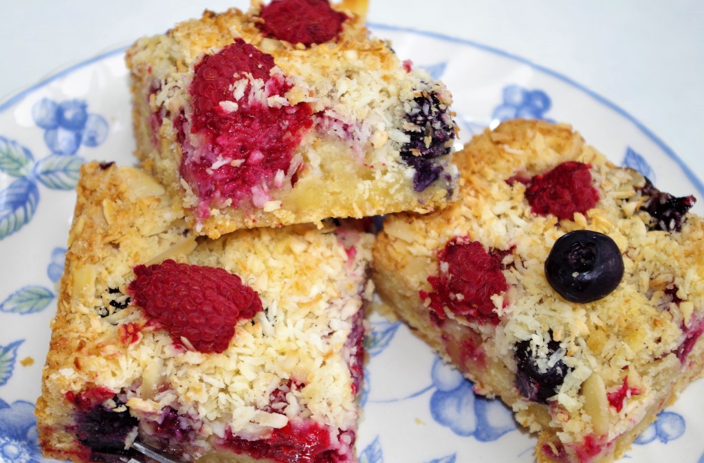 * The remaining berries will go on top shortly, but if you prefer a plainer coconut top, just put all the berries in at this stage.