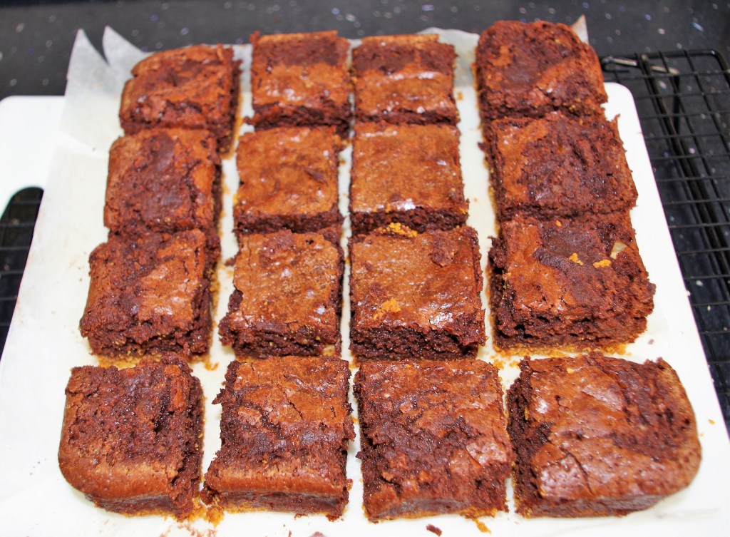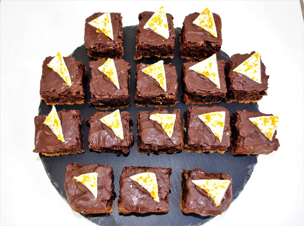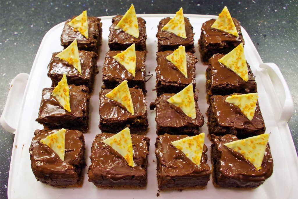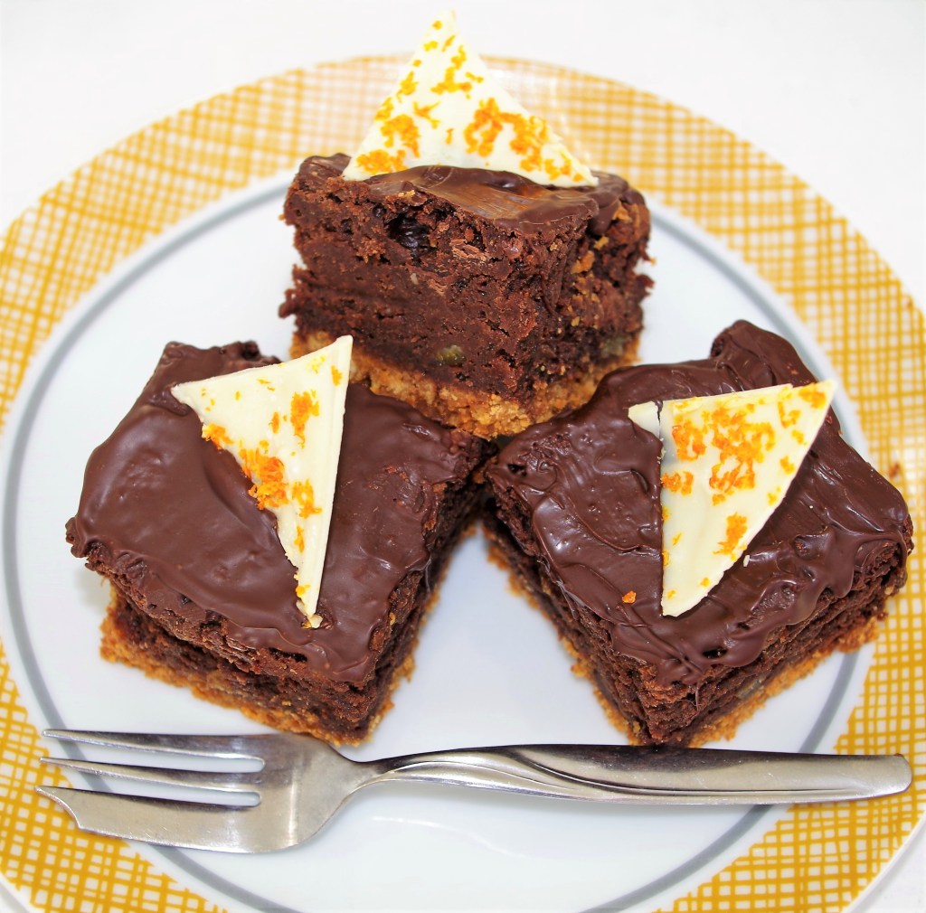 These are mega brownies: big, bold and delicious, ideal for all, but especially any serious brownieholics. There’s a chunky biscuit base then a lusciously dense orange-chocolate mid layer topped with even more chocolate. Go on, be indulgent.