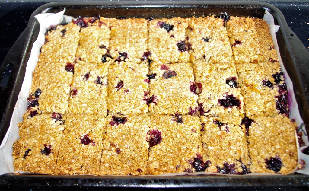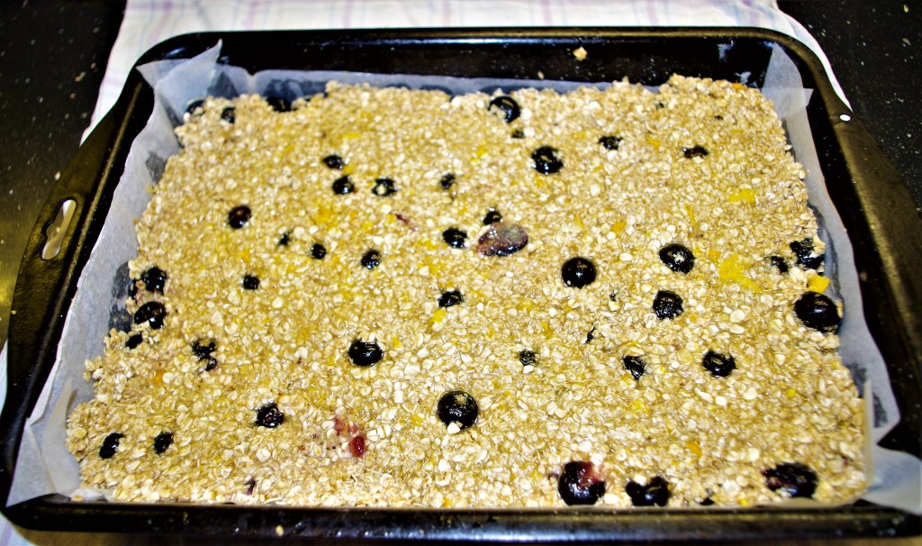 Flapjack always tastes great, but doesn’t always look particularly special or inviting. Blueberries and Oranges not only add colour, they add so much to the texture and give the flavour an extra dimension too.