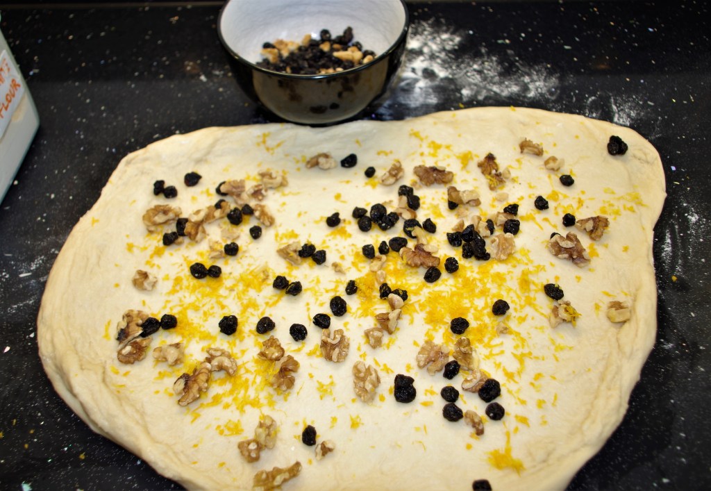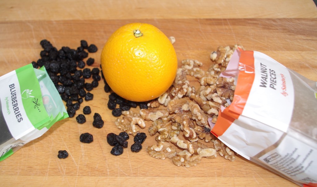 * NB I recommend only using this amount of orange, otherwise the mixture could be very wet. The zest from the whole orange should give plenty of orange flavour. I also used dried blueberries as fresh ones not only add a lot of moisture, they also bleed into the dough.