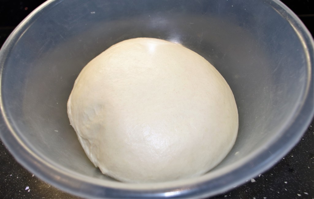 3. Knead (8 – 10 minutes in a stand mixer; around 15 minutes by hand) Place in an oiled bowl and turn it over a few times then cover and leave until it has doubled in volume – about 90 minutes in a warm kitchen.