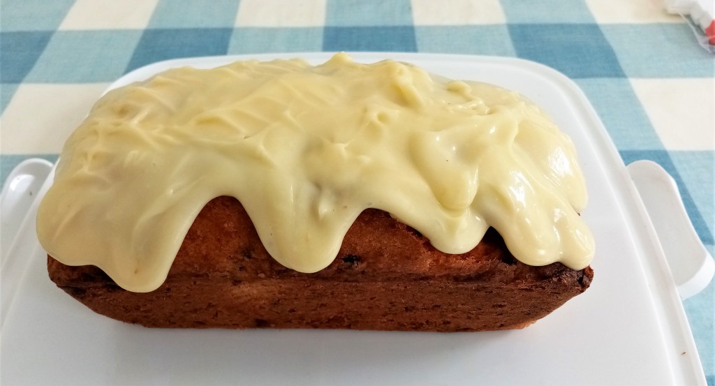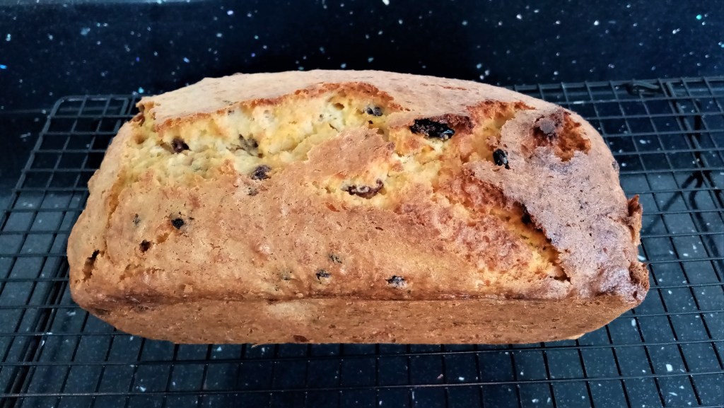6. Bake for about 55 – 60 minutes. Test with a skewer inserted into the middle. If baked, it will come out clean. Leave in the tin for about 5 – 10 minutes then turn out onto a wire rack to cool fully.