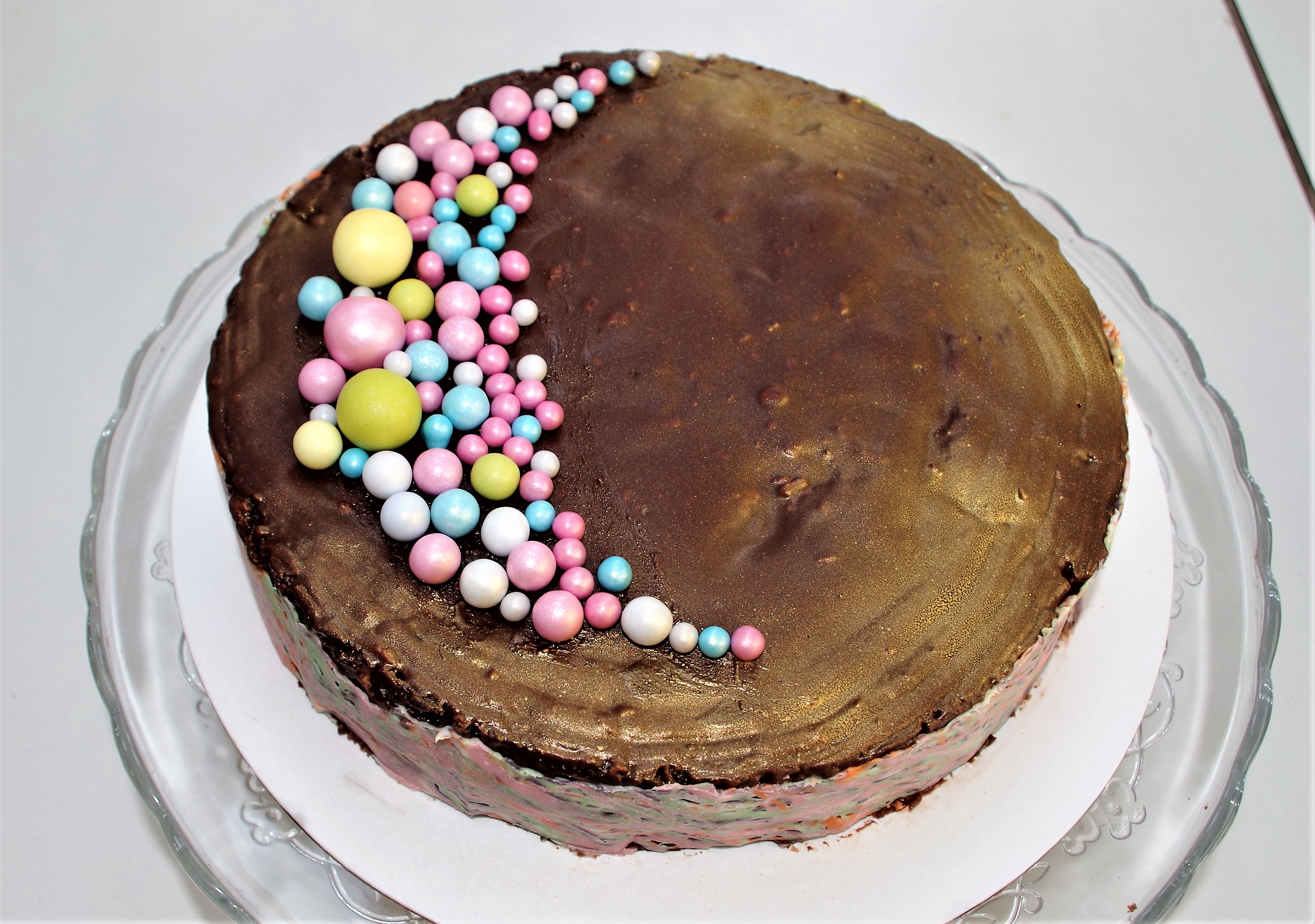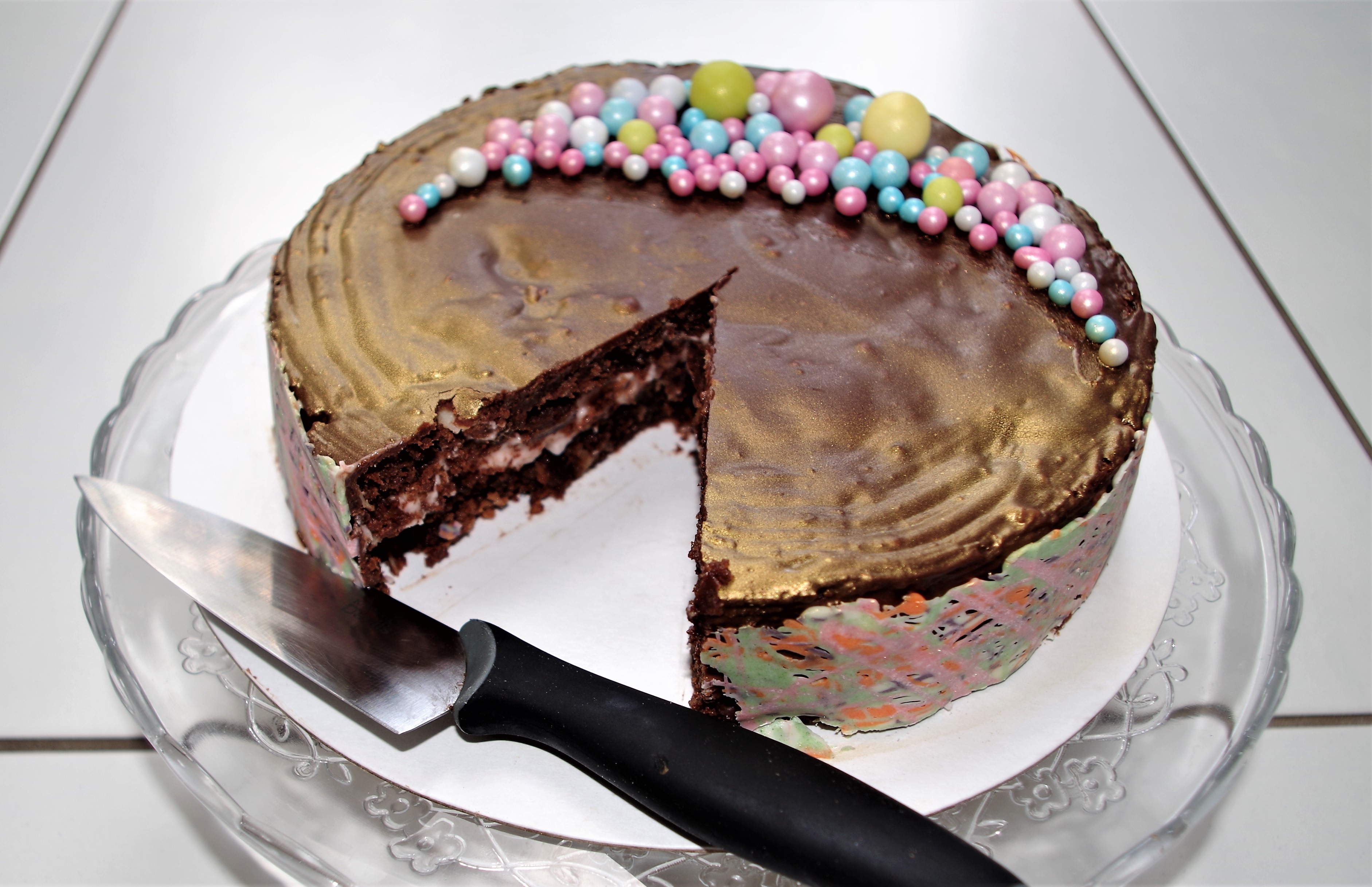 Times: Prep 25 min; bake 30 – 35 min + cooling; Filling 5 min + fridge time; ganache 10 min + fridge time if needed. Chocolate collar 20 – 30 mins depending how many colours.
