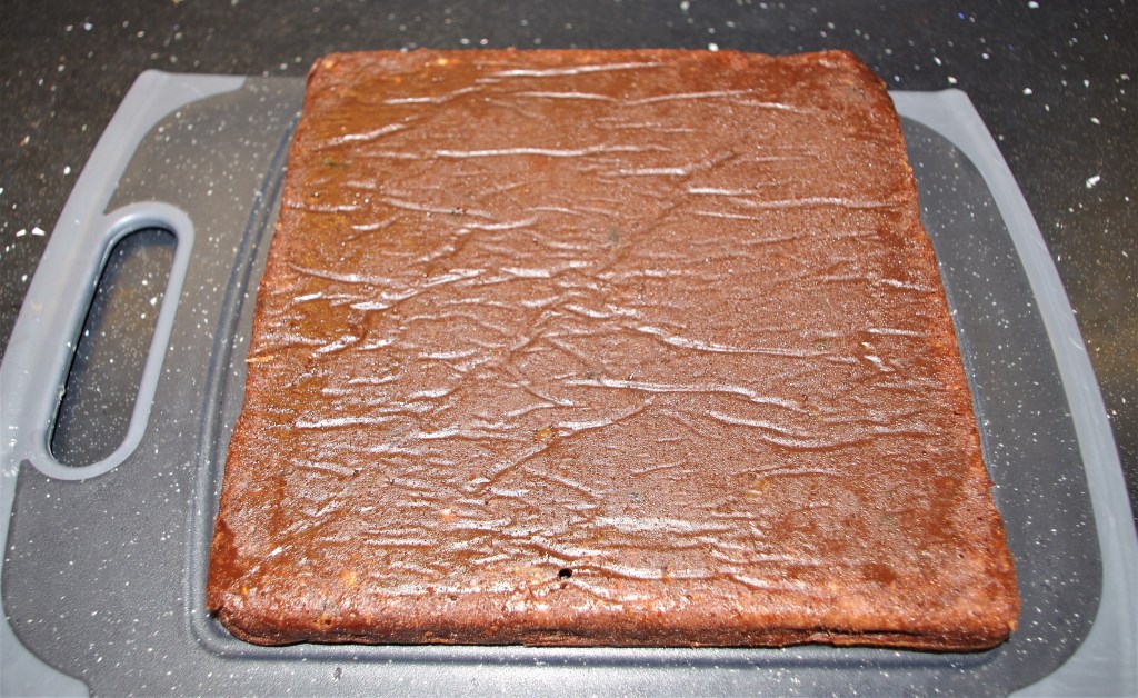 7. Remove from the oven and leave in the tin for half an hour then invert onto a cutting board and remove the baking paper.