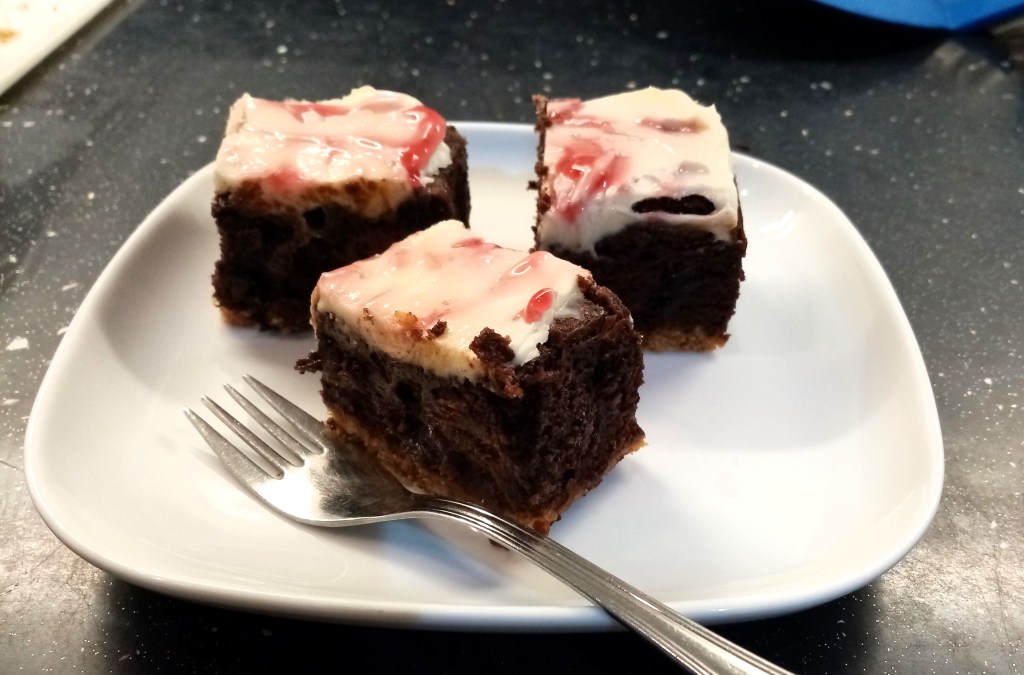 This is a rich and decadent* triple layer brownie. (* By “decadent” I mean it tastes great and has tons of calories No surprise there though.)