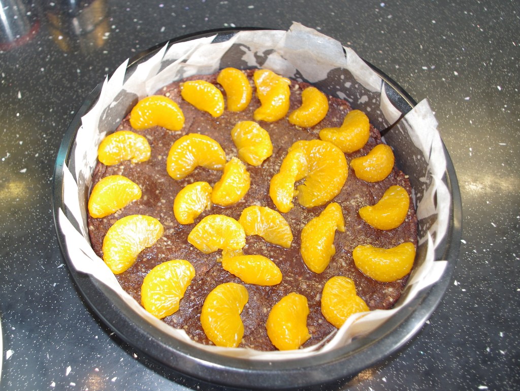 5. When the base has chilled in the fridge layer it with orange segments (use half the tin/carton) and chill in the fridge again.