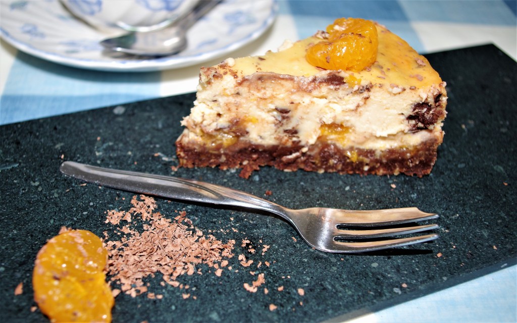 (*My tip – or admission – arrange the orange segments so that they hide any cracks that appear on the cheesecake’s top. If you look closely you can just see some on mine.)