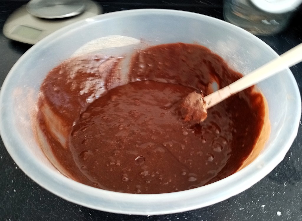 8. Bake for around 40 minutes. If you test it with a cocktail stick it may be baked even if the stick comes out chocolaty. A better indicator of “doneness” is the bake pulling away from the sides of the mould. (see gallery 2)