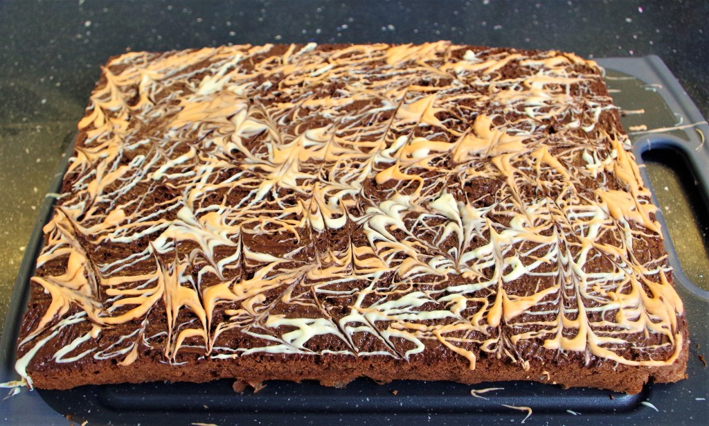 Need: A 20 x 30cm baking tray with reasonably high sides. (I used a stand mixer, but a hand mixer is OK, or you could burn some calories using a wooden spoon)