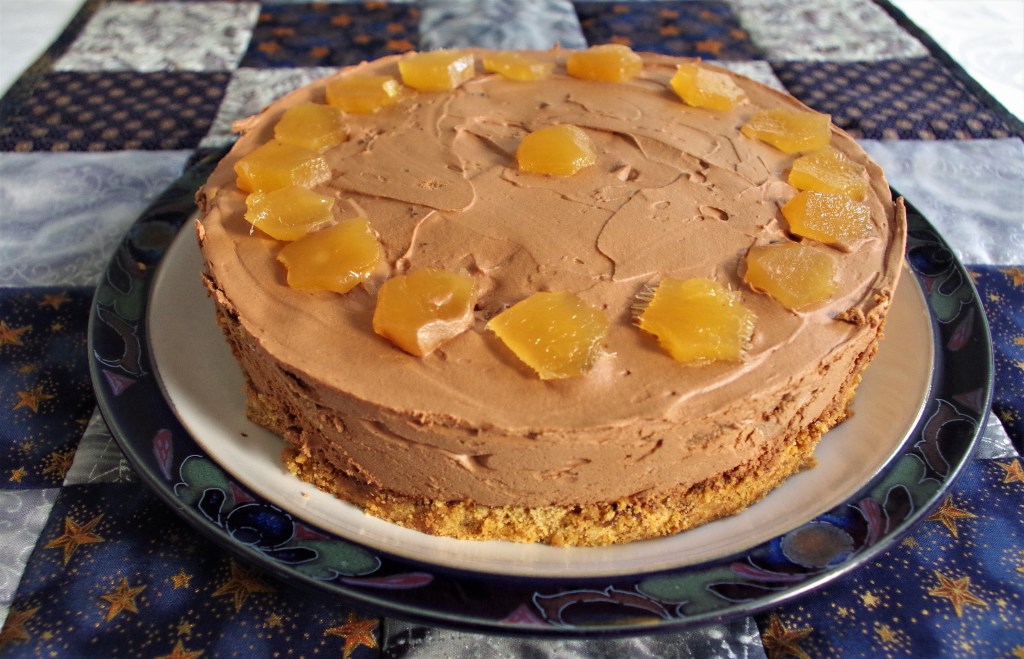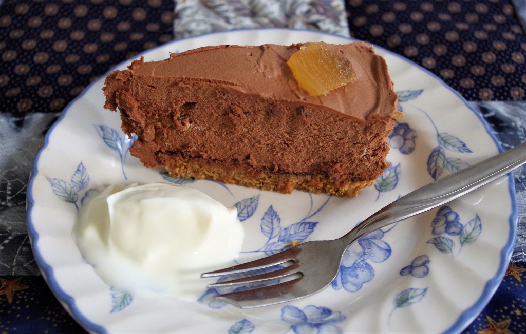 After my Chocolate Truffle Torte with Raspberries proved so popular I decided to make a ginger version with a few tasty extras. This one has a biscuit base. It’s rich and yummy, just like its predecessor, but it also has a nice bit of gingery warmth.