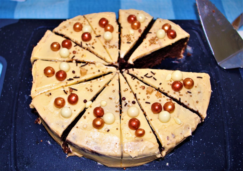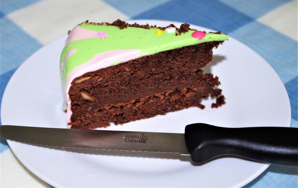 As this cake is wonderfully dense and moist it may prove difficult to slice horizontally into layers. If you do choose to do so I’d recommend using a sharp, wet knife.