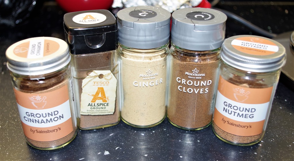 - 3 – 4 tsp of ground Christmassy spices, as above