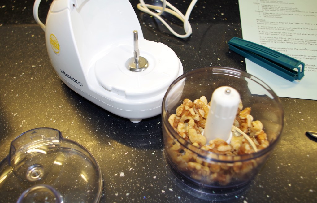 2. Place flour, sugar and walnut pieces in a large bowl. Mix together then rub in the butter, using your finger tips.