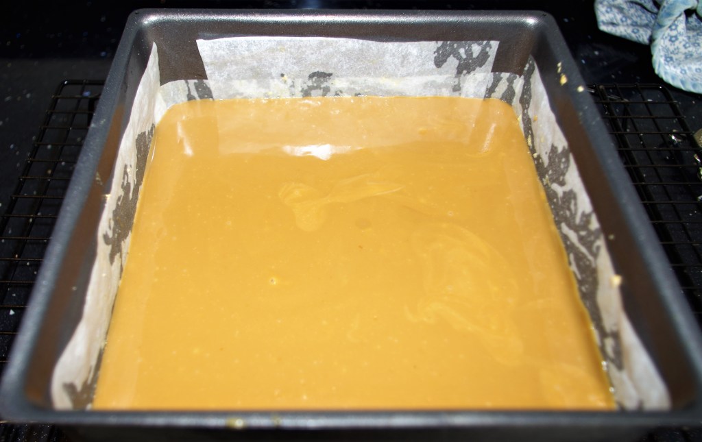 5. Pour the caramel over the shortbread base. Tip to spread evenly. Leave to cool. (Don’t refrigerate.)