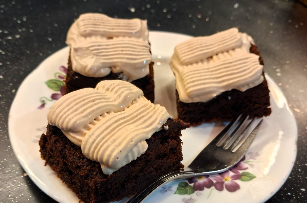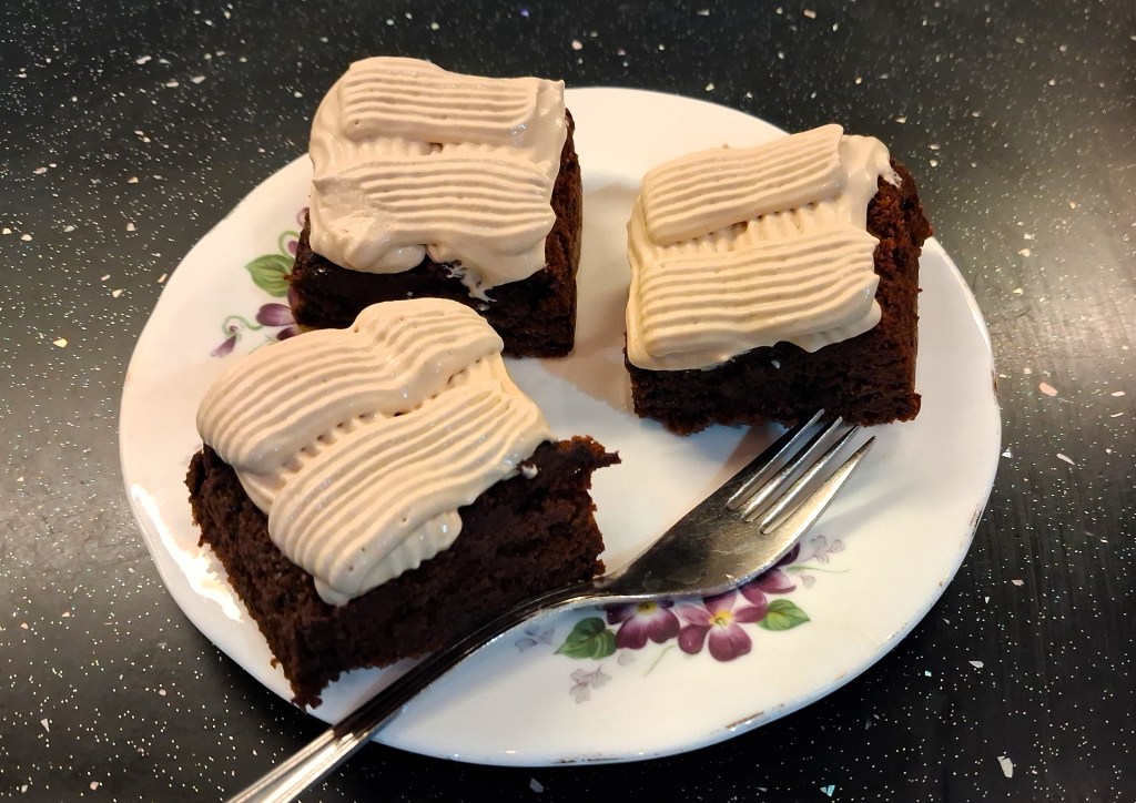 Time: About an hour to bake the brownie block. Then cooling and cutting time. Around 30 minutes to mix and add the topping.