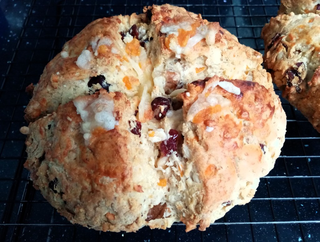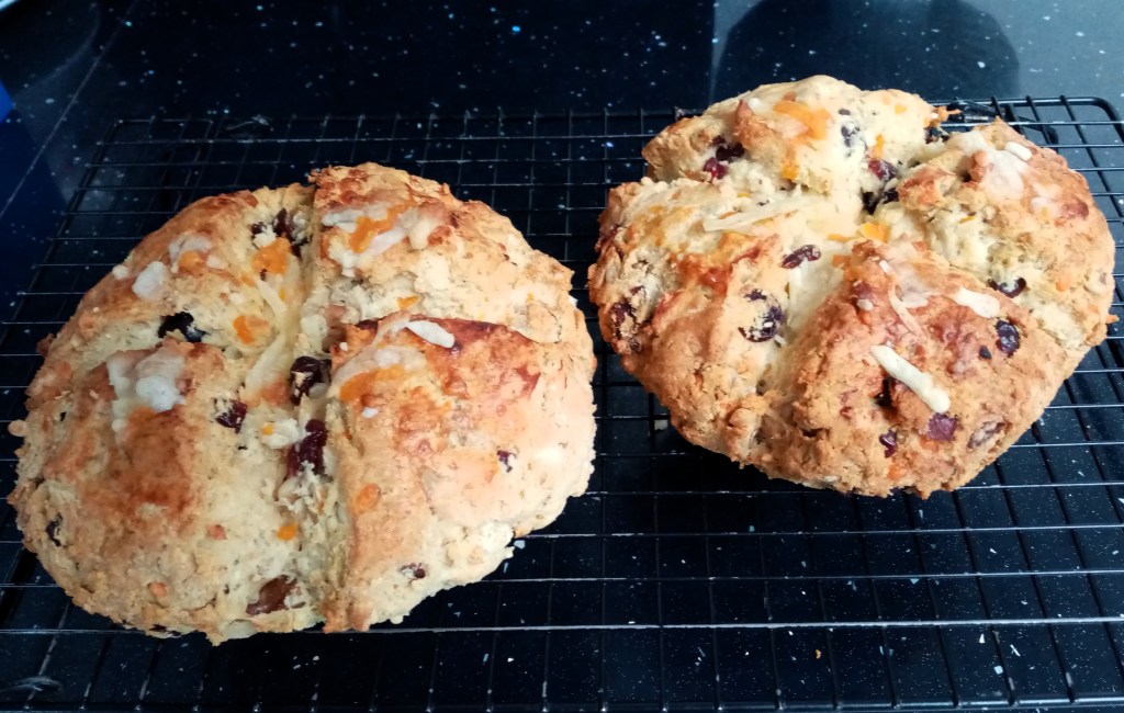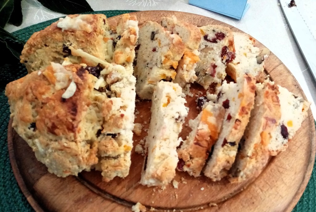 I needed to make a quick loaf or two to take to a shared lunch with friends and I wanted them to be gluten free so that everyone could tuck in. Soda bread was the obvious answer, but I also wanted a hint of Christmassy flavours. Here’s what I made and they went down a treat.
