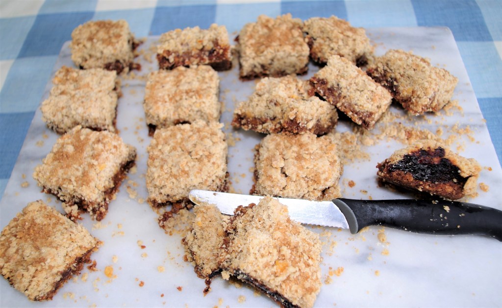 8. Bake for 35 – 40 minutes. Leave to cool in the tin then cut.