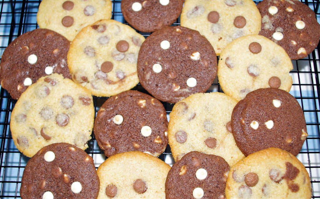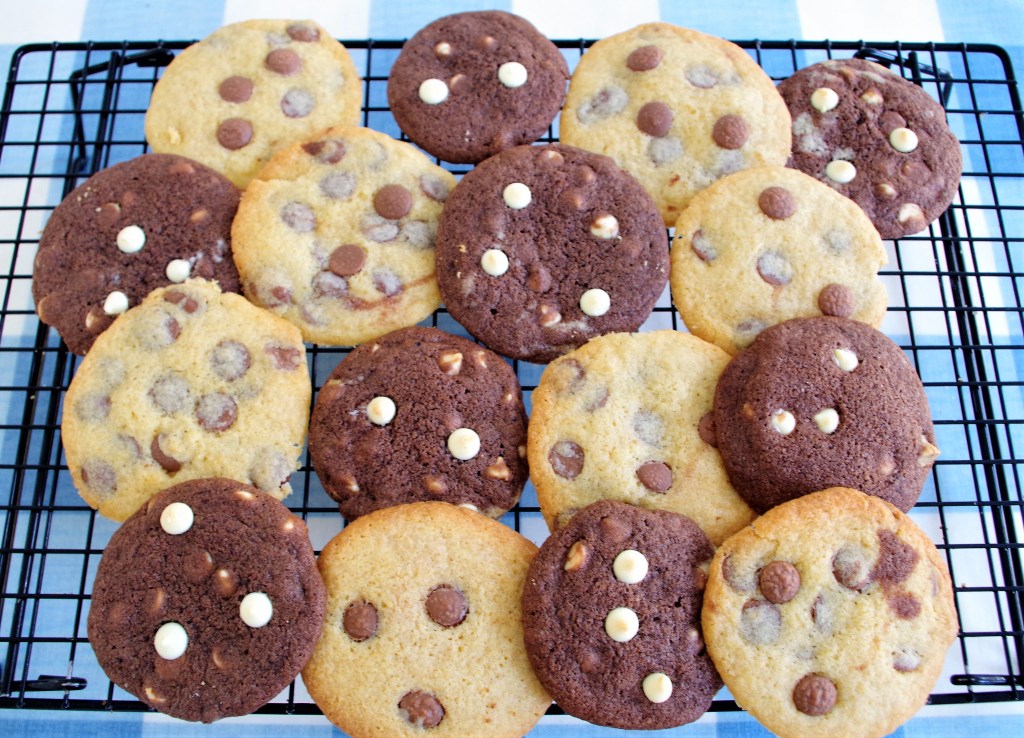 *** I’d recommend mixing the dark and white “blobs” on each tray. That way you avoid having one batch browned more than the other. When baking biscuits I also turn my trays round and swap their shelves halfway through baking. So maybe life isn’t too short for a bit of faffing?