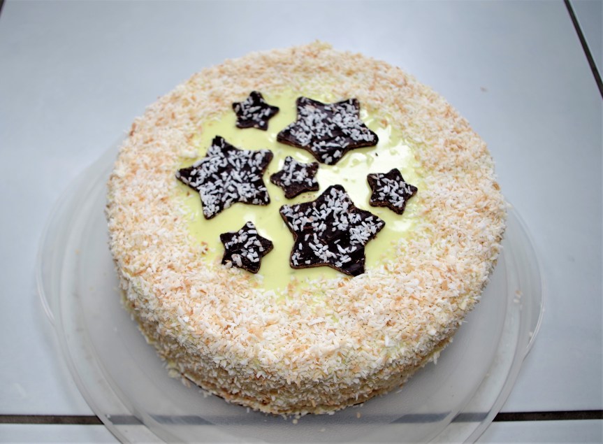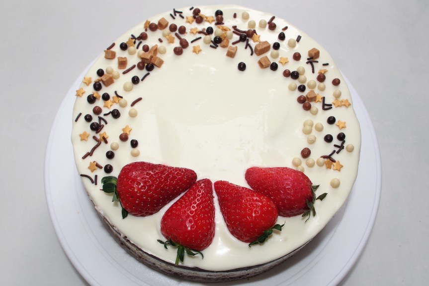 10. Use the remaining mixture to cover the top of the cake. Decorate however you choose.