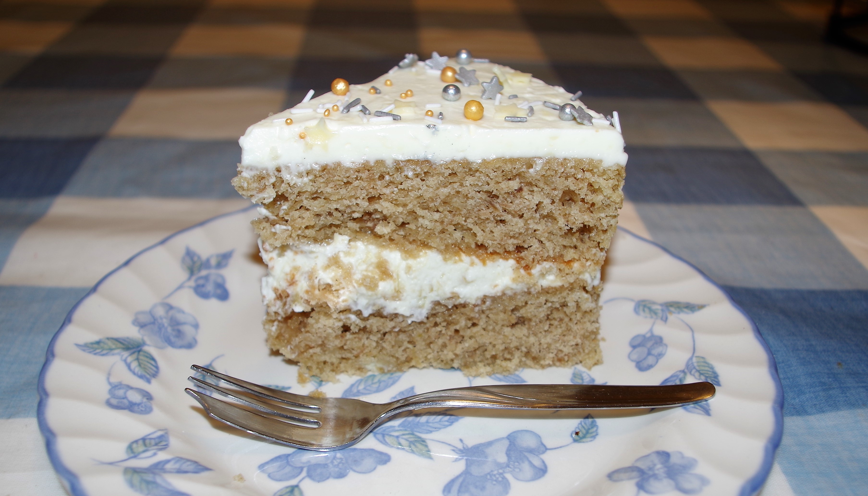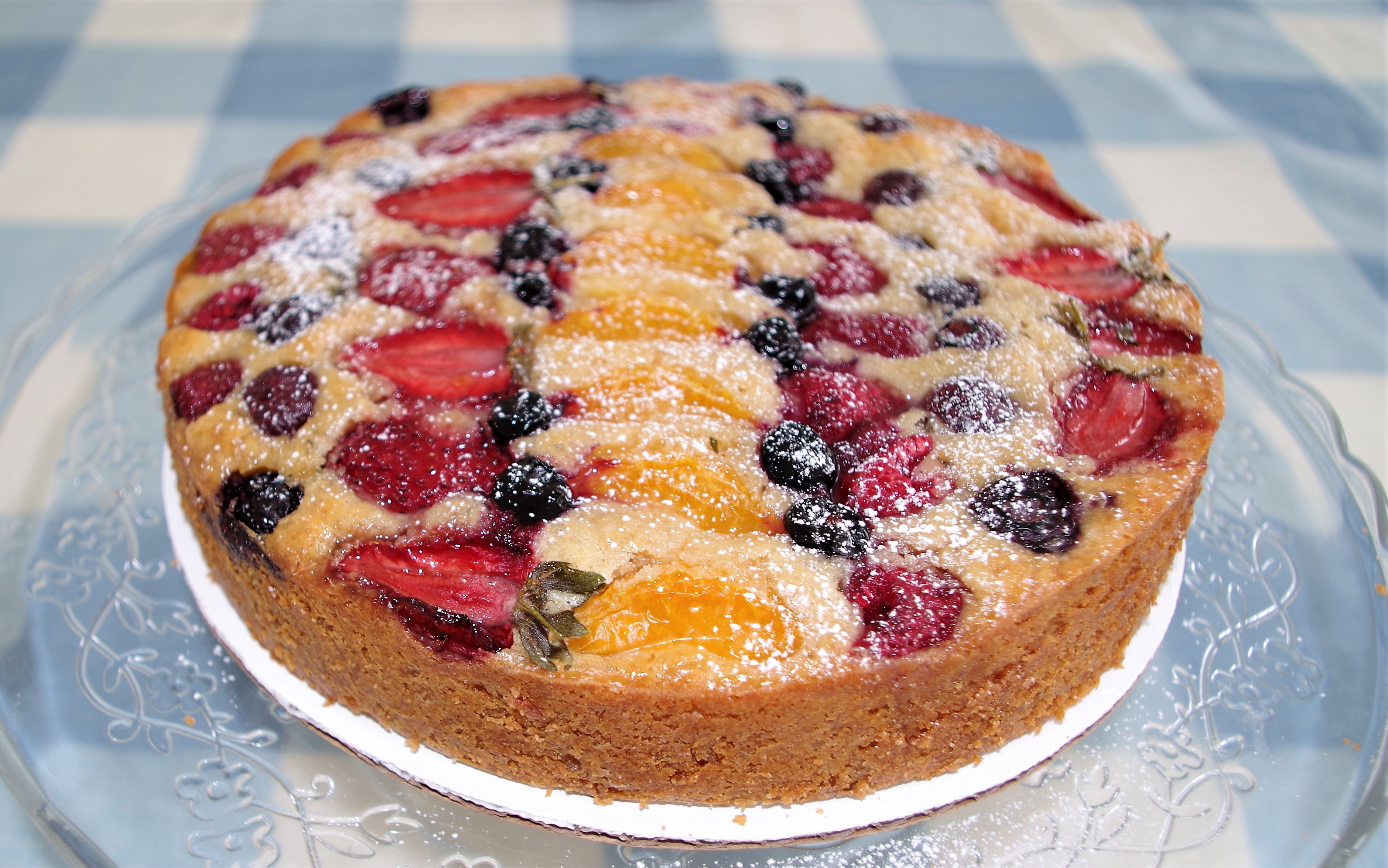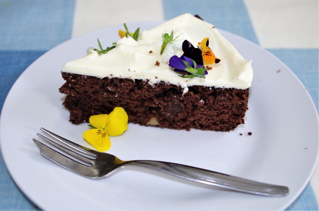 Dense, but light, this is a rich and luscious cake with real depth of flavour. What’s more, it’s quick and easy to bake. The topping shown below is an optional extra, but I highly recommend it for a lovely, rich and tasty finish. It’s flexible too. For example, I’d planned to use two pears but only had one in the fruit bowl, so in went an apple and half a banana. And it came out fine.