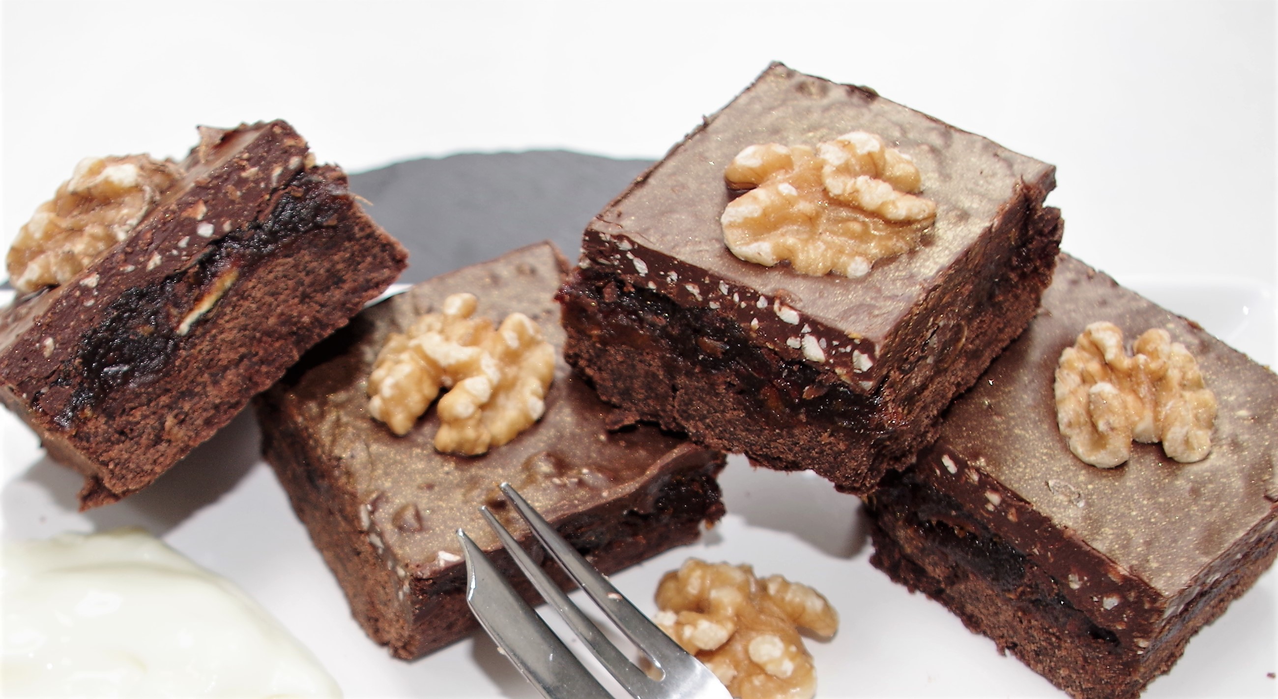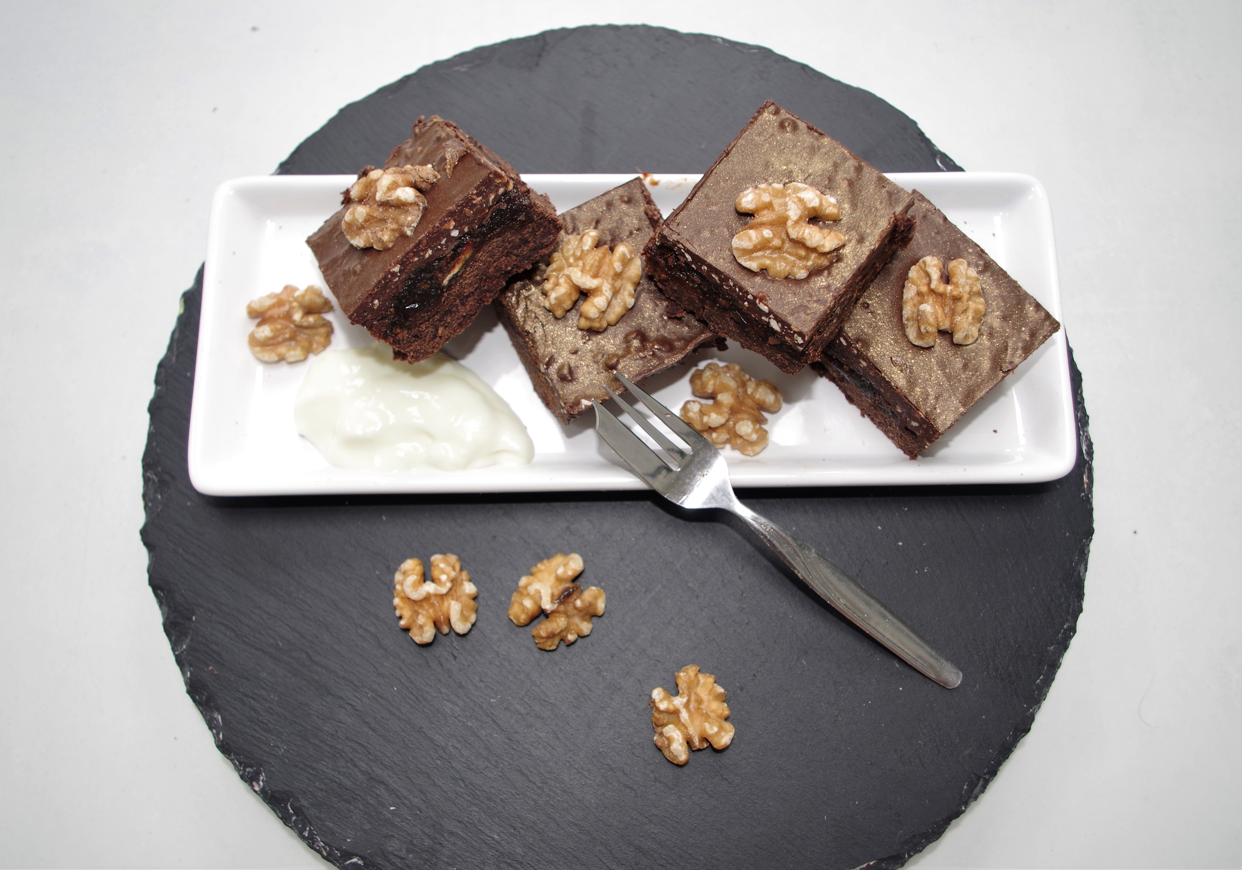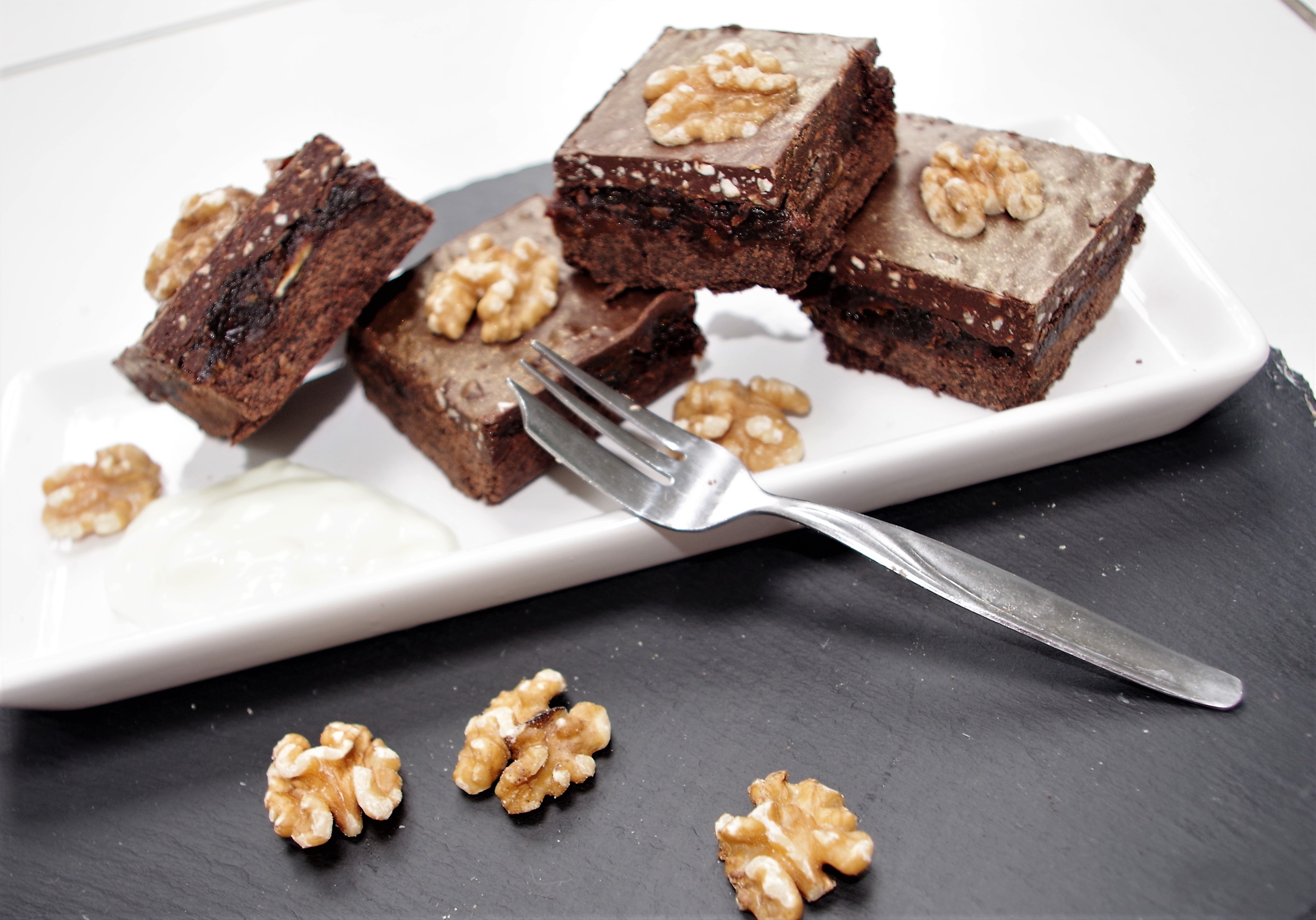 11. Stir in the chopped walnuts. Mix well then pour over the date layer, tipping the tin back and forth to ensure an even coverage. Leave somewhere cool, maybe in the fridge to harden.