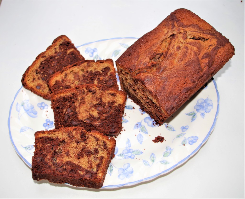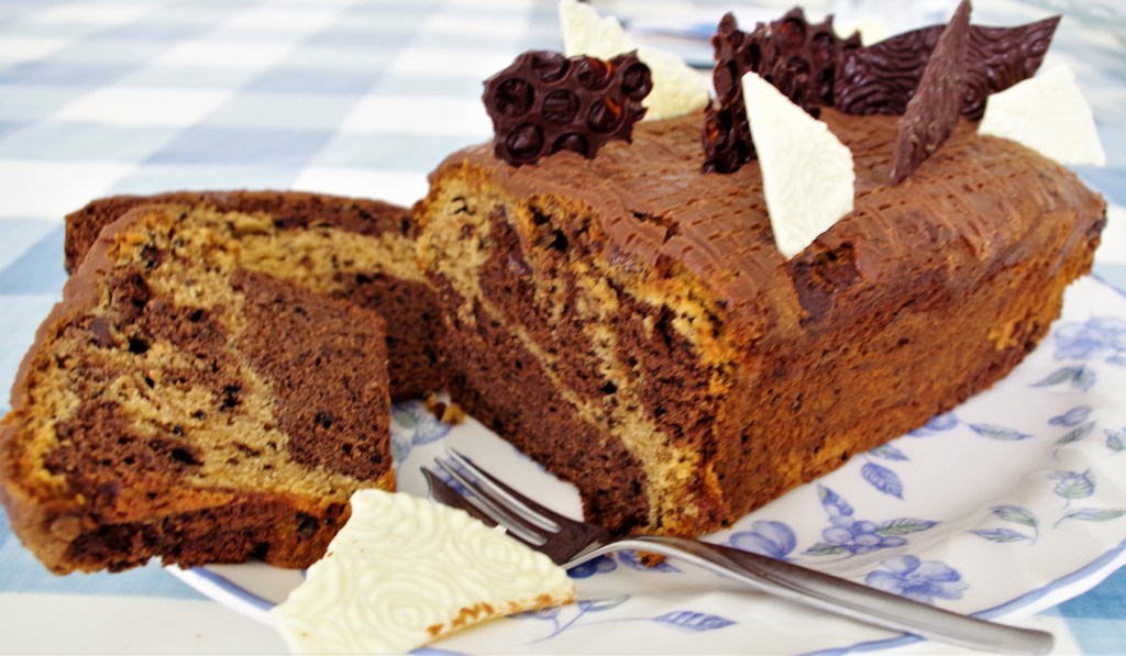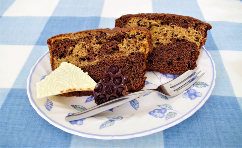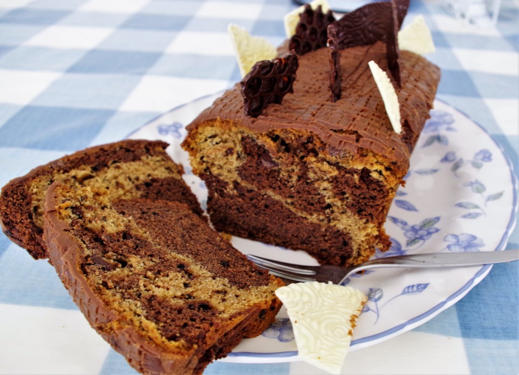 Here’s a simple, unadorned cake that’s so easy to make, but still has a lovely taste and texture. I’ve intentionally made it without any topping, but you could add a ganache if desired, or maybe just brush the top with warmed jam, honey or chocolate spread. When sliced it reveals an attractive swirly chocolateness (If that’s not a real word, it ought to be.)