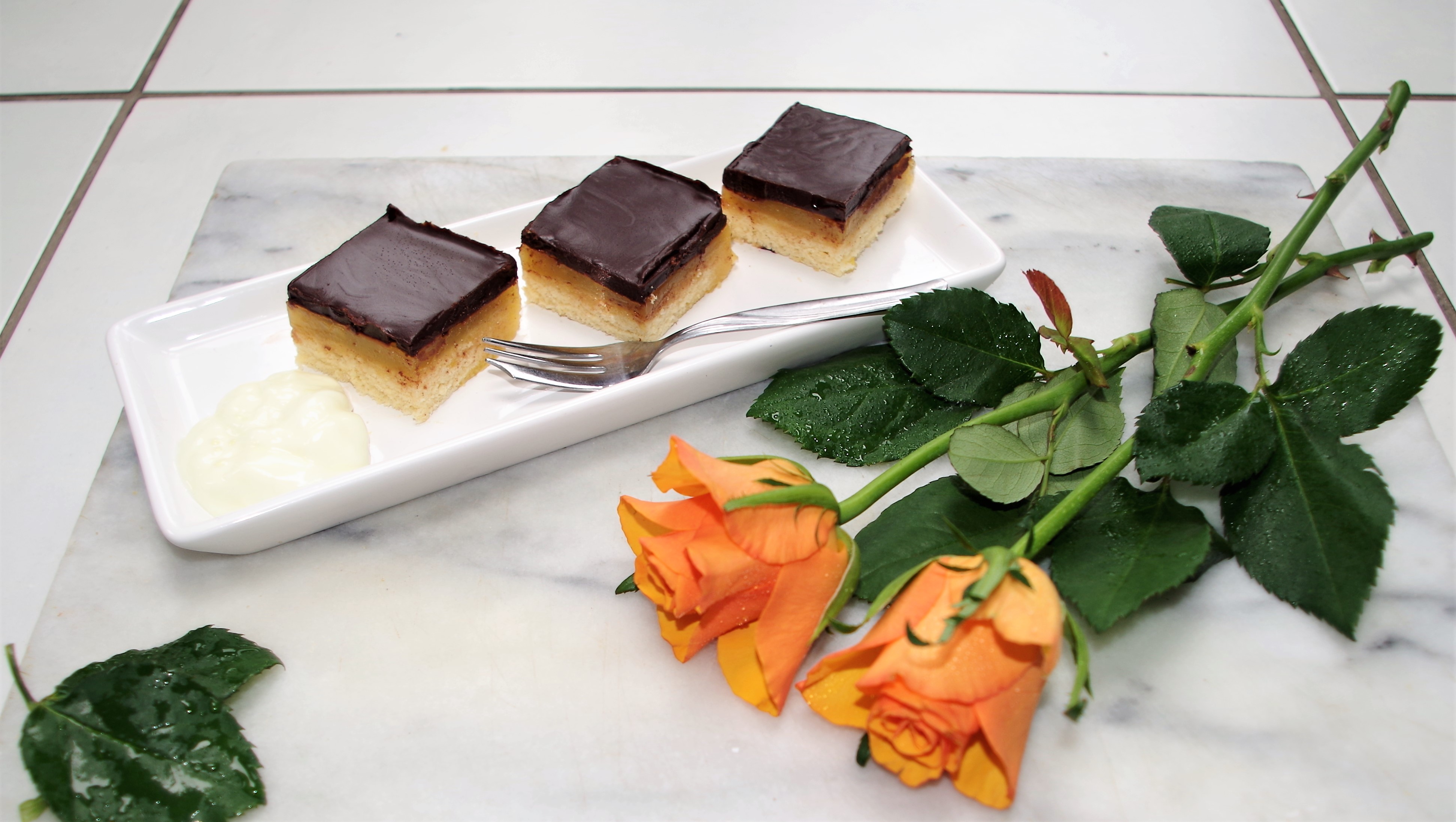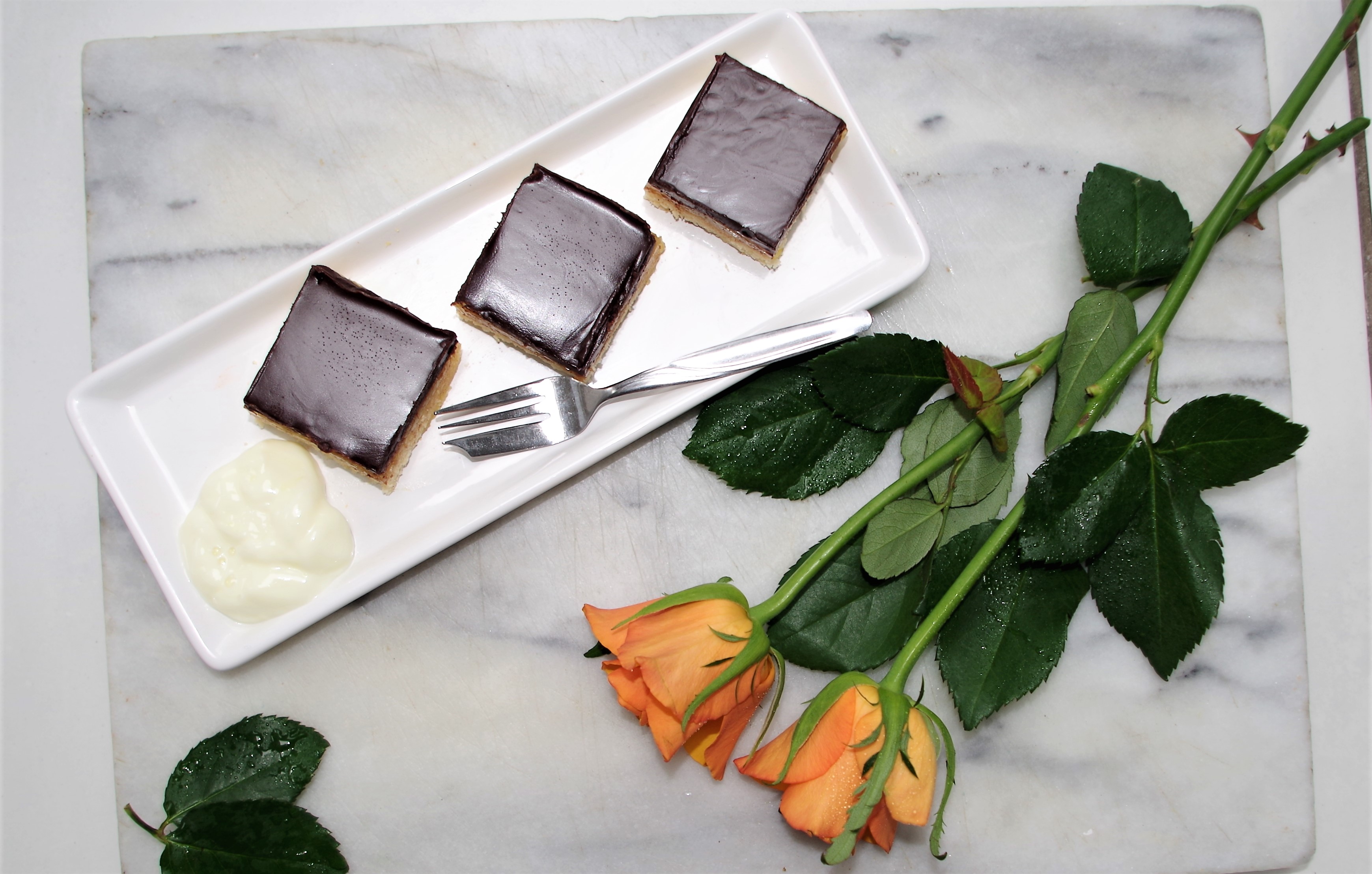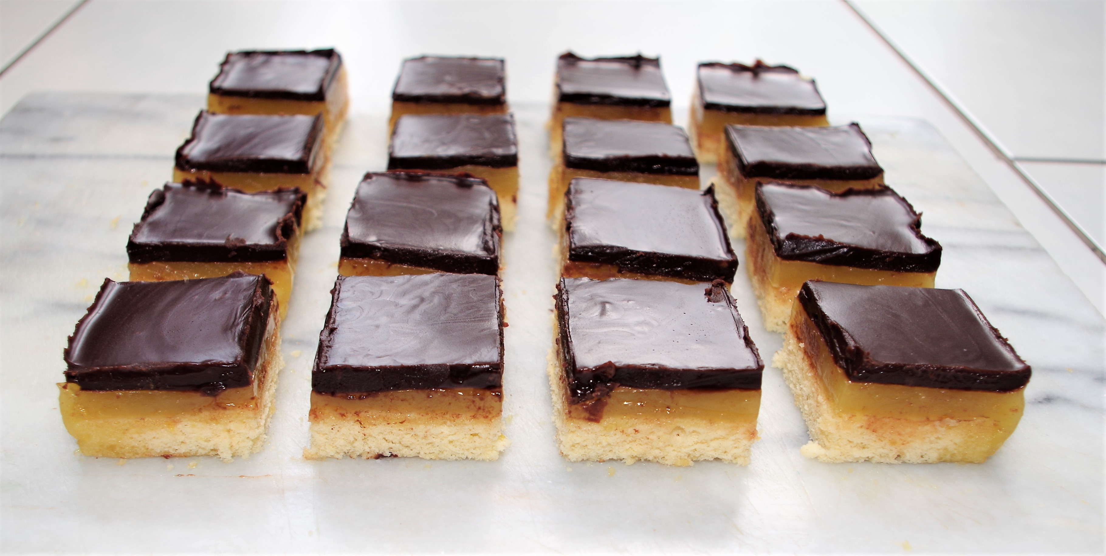 A super light sponge base and a rich chocolate topping sandwich a firm and tangy jelly mid-layer, making these little bites triple tasty.