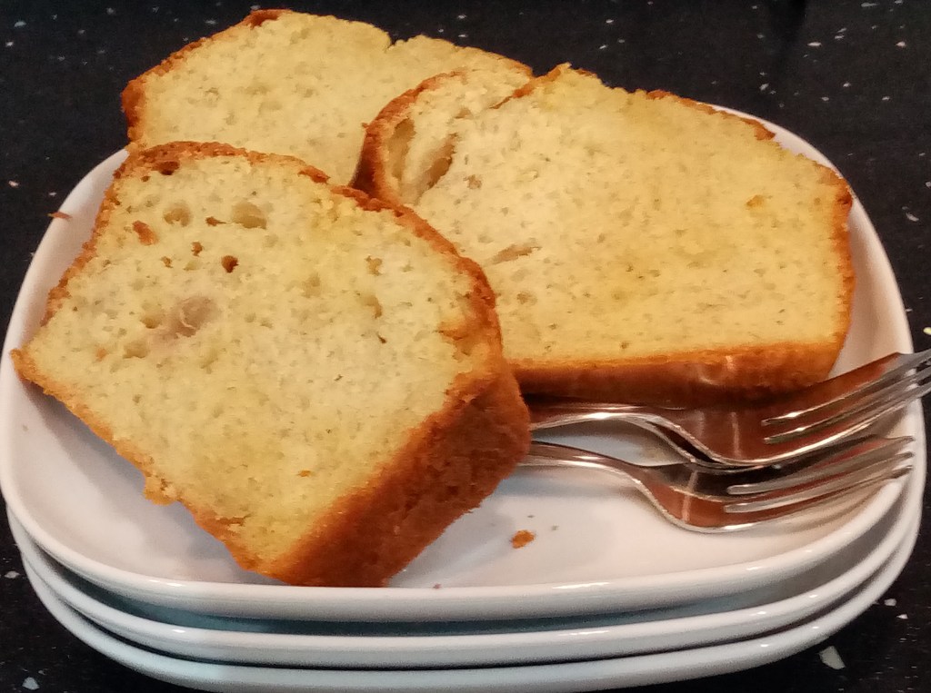 Makes: 1 Loaf cake (10 – 12 slices, depending how generously or frugally you cut it.)