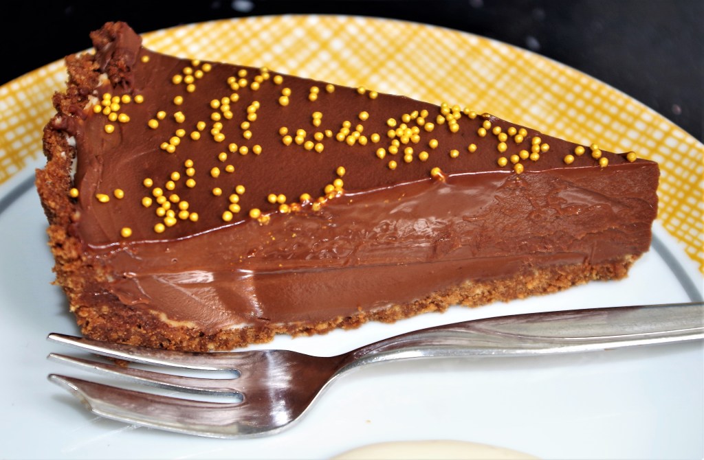 Here’s a wonderfully rich and tasty chocolate tart. The base is similar to a cheesecake base and requires no baking. The filling is also very simple and straight forward. The richness of the chocolate and cream filling is nicely balanced by the slight sharpness of fresh raspberries.