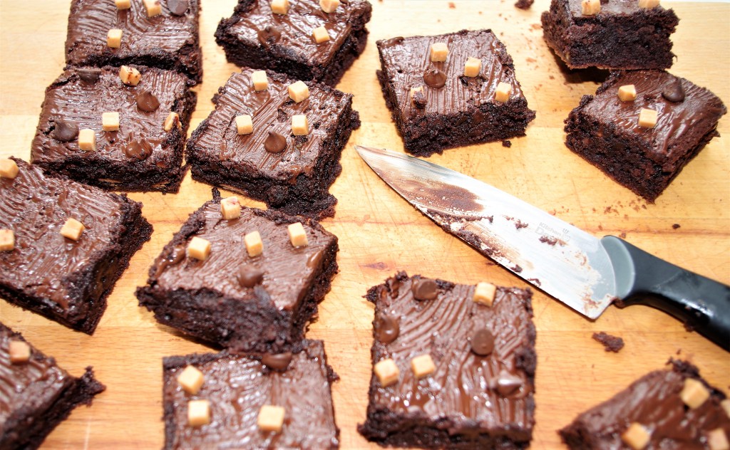This is a wonderfully moist, rich and tasty brownie. The fact that it can easily be gluten free is a bonus. This bake can readily hold its own against any “normal” with-gluten brownie.