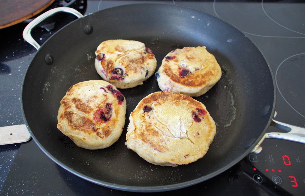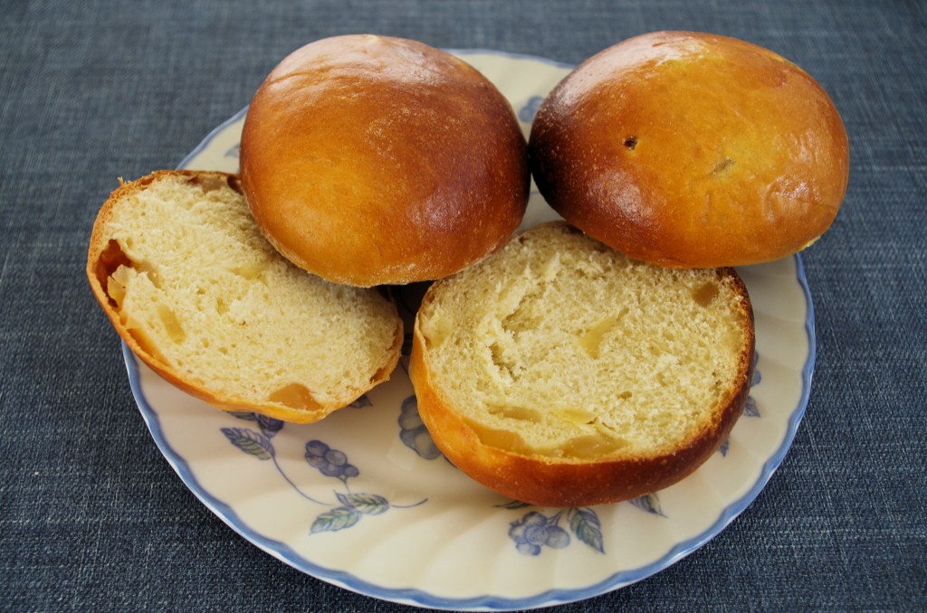 9. Use the remaining beaten egg to brush over the teacakes then bake them in the centre of the oven for 17 – 21 minutes, or until well risen and golden-brown. (Keep an eye on them. You will probably need to cover them with foil as they darken very easily.)