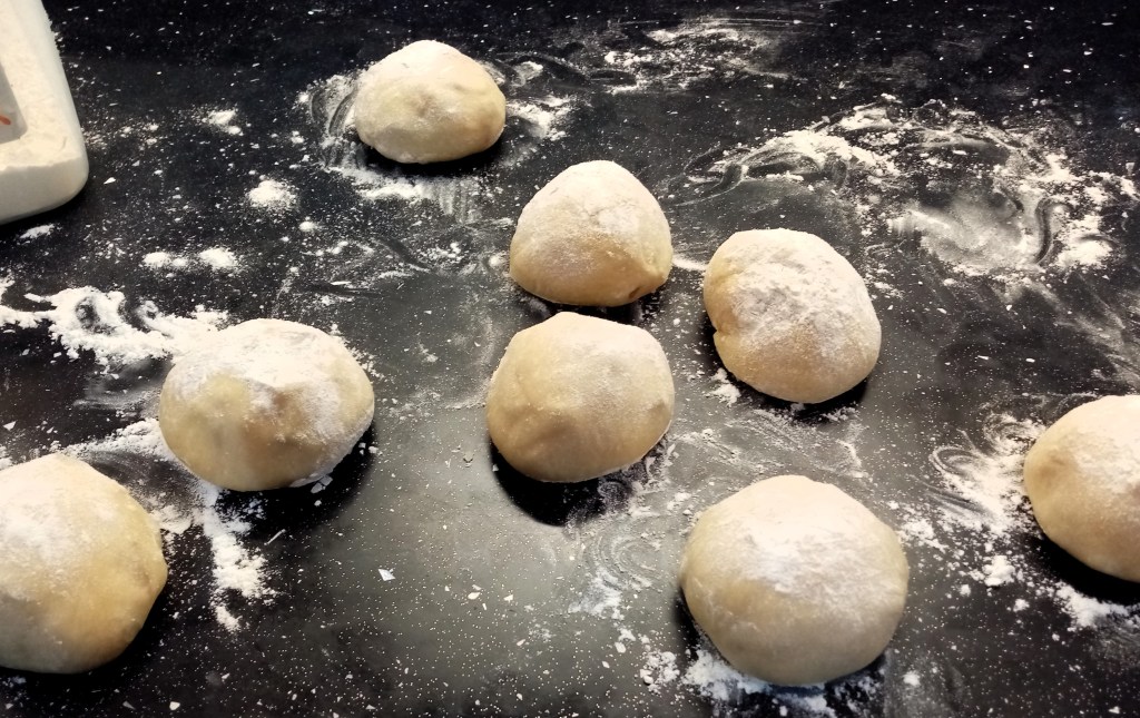 7. Place them well apart on one or two lined baking tray(s) and cover again. Leave until risen again (about 45 – 60 minutes, depending on room temperature.)