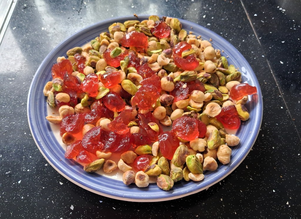 - 125g/5oz nuts (hazelnuts and pistachios work well together)