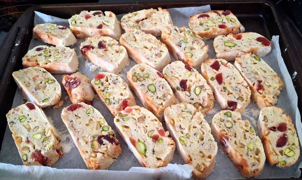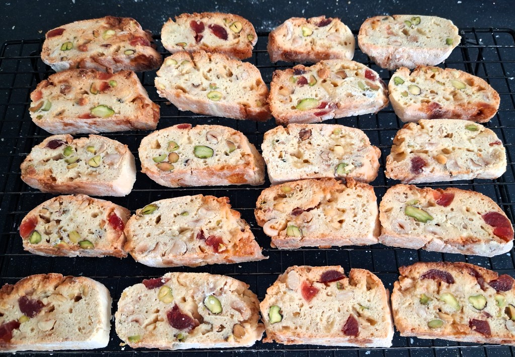 These wonderful double-baked biscuits are packed with tasty extras. Every bite will contain a combination of “what it says on the tin”. And, unlike many gluten free bakes, this one more than holds its own against any “with gluten” versions. Not only do they taste great, but the texture is great too.