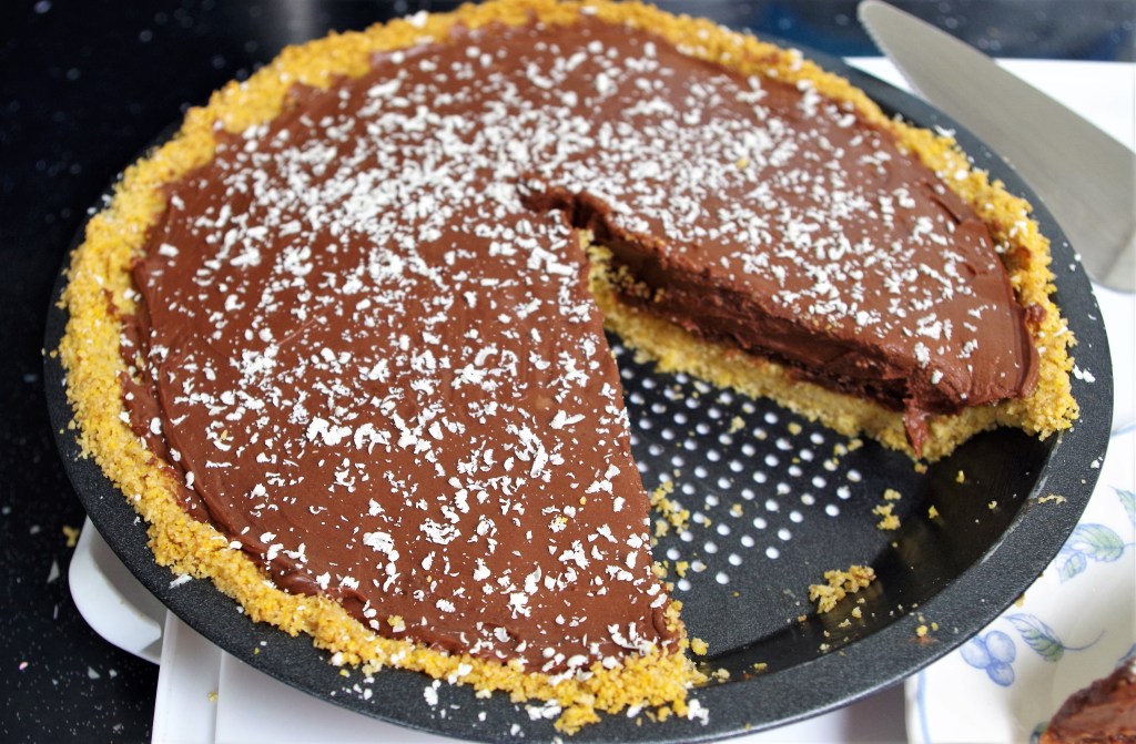 The soft, crumbly base has a melt-in-the-mouth loveliness; the filling is rich, tasty and unctuous. So, all in all, a very nice tart. What’s more, it’s gluten free and only requires 15 minutes of oven time.