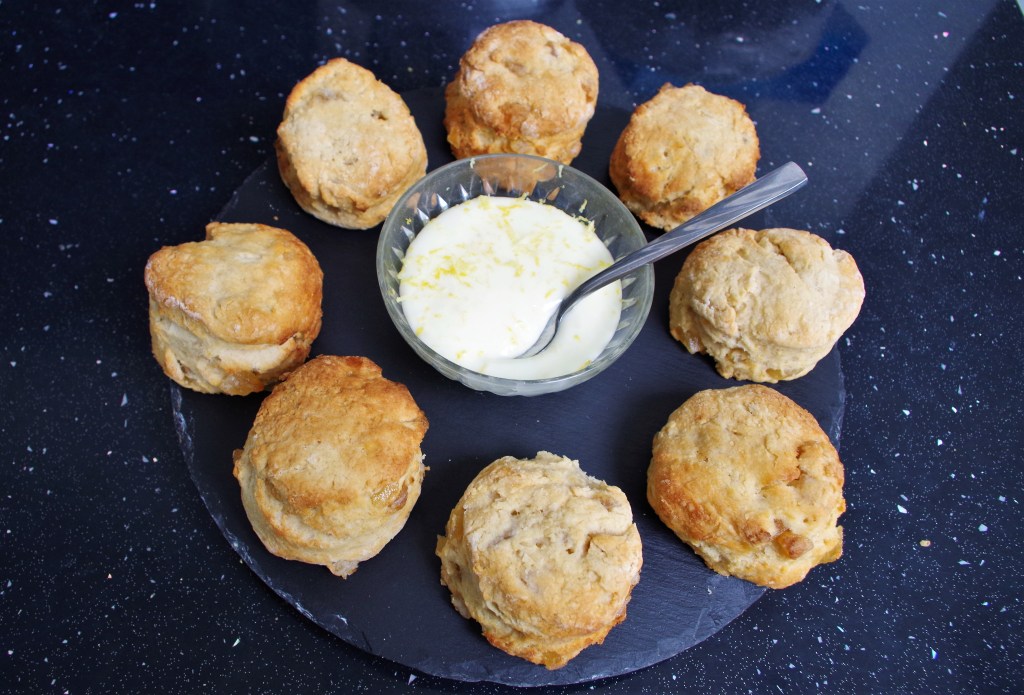 Makes: 9 – 10 scones (using a 6cm cutter)