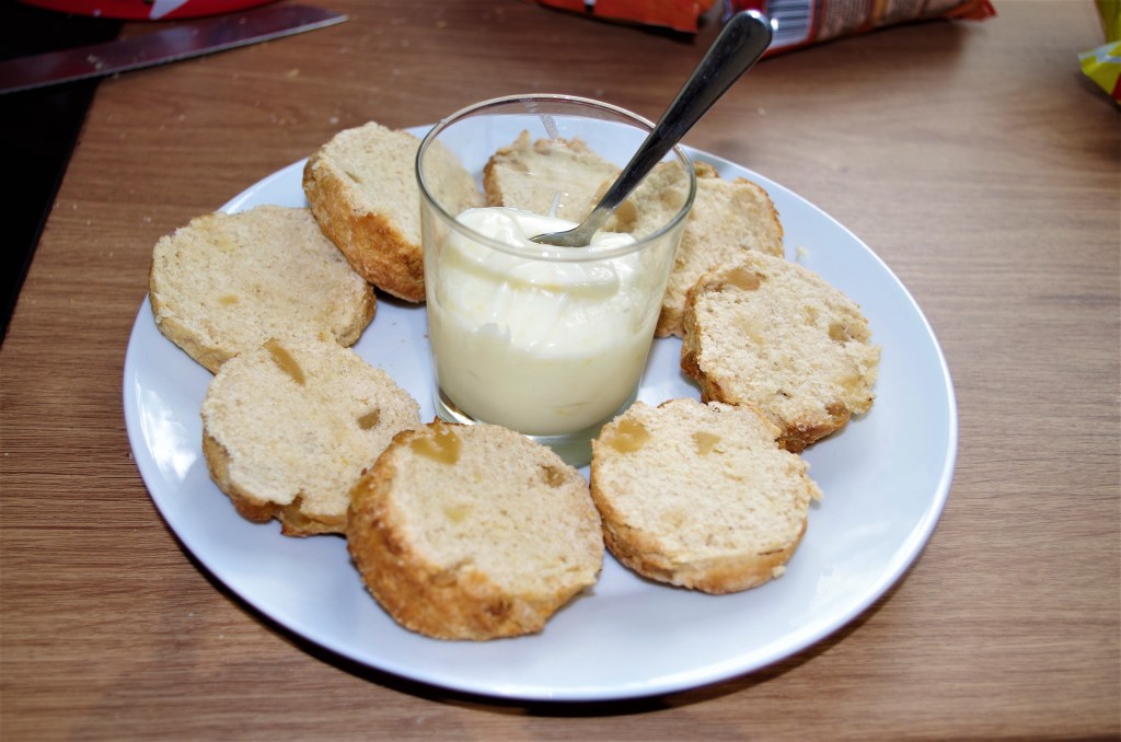 I made these scones for a group of mums who bring their pre-school children to “Totzone”, which my church runs every Tuesday morning during term time. They are very appreciative of the facilities and the refreshments. And also very complimentary, especially for these scones, which I served with a Mascarpone Lemon Cream mixture – not sure whether to call it a sauce or a filling, so “mixture” will have to do.