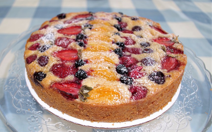 6. Leave to cool in the tin for 15 – 20 min. then turn out onto a wire rack to cool fully. Dust with icing sugar before serving, or leave as it is.