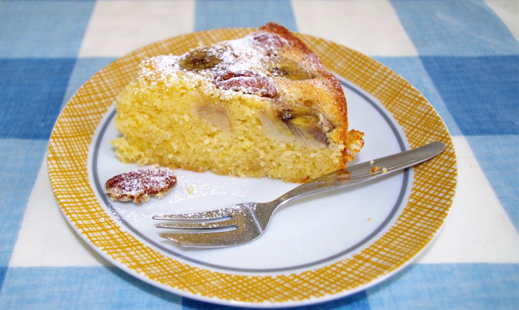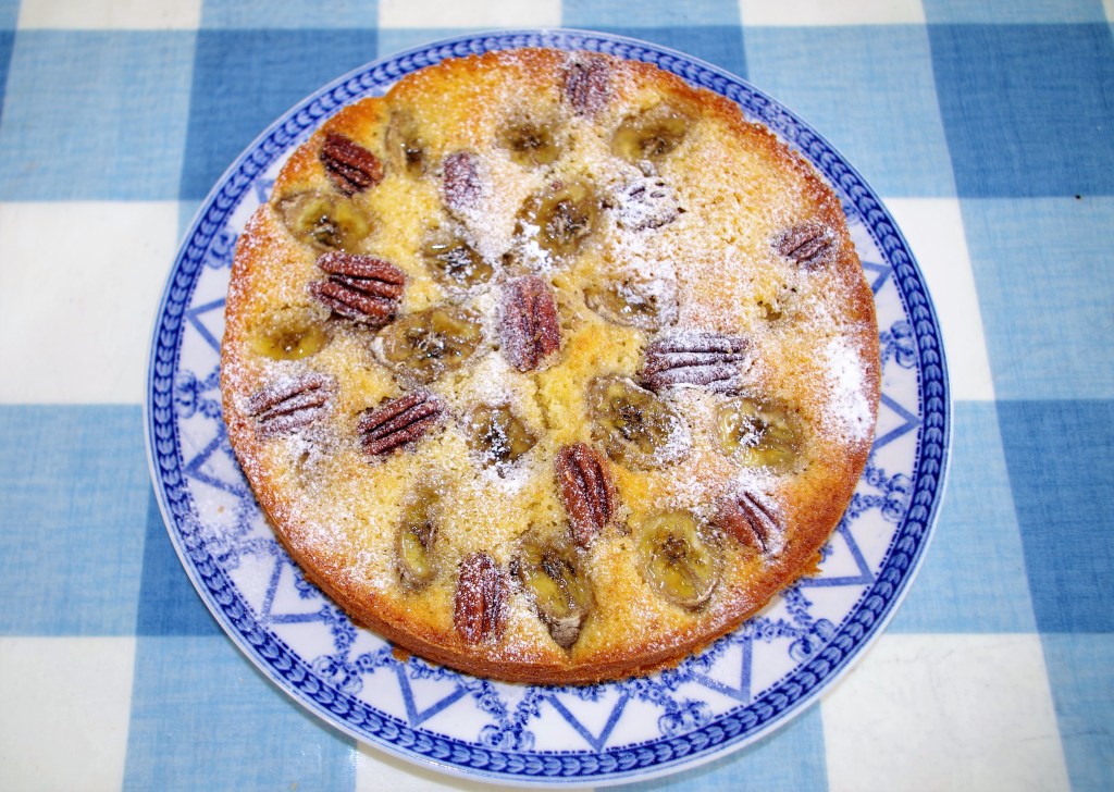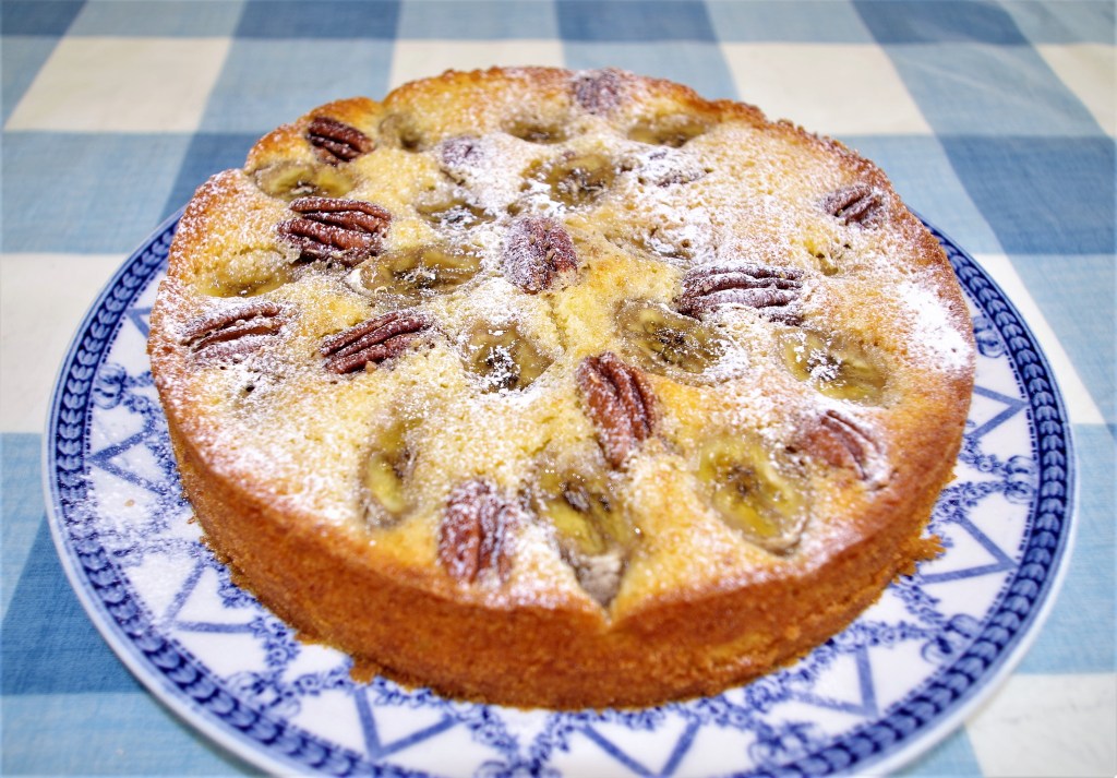 Here’s an ideal tea-time treat – a nice easy sponge cake with a subtle tang of lemon and topped with a tasty combination of bananas and pecans to give texture as well as flavour.