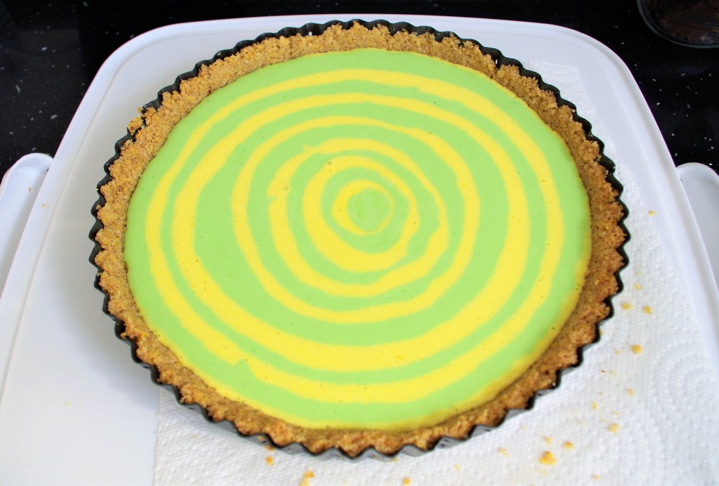 7. Put the pie back in the oven for 15 – 20 minutes. When baked, place the tart, still in the tin, onto a wire rack to cool. Then place in the fridge for at least 3 hours or overnight.
