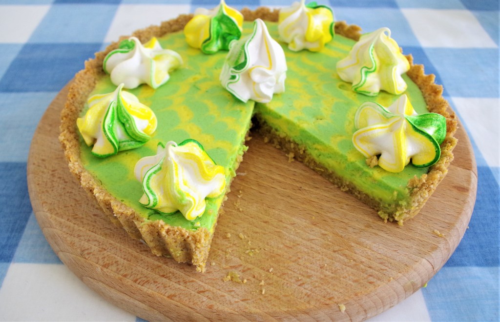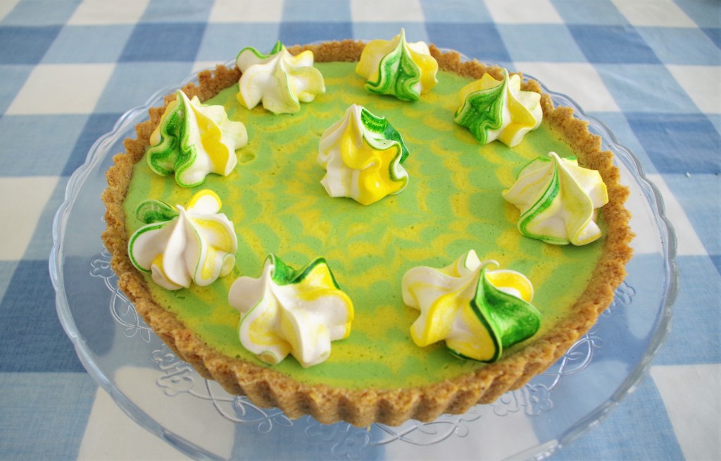 Here’s a lovely tangy tart with a rich citrus filling encased in a gluten free crunchy crumbly crust. Meringue kisses add a super decorative and tasty element, but can be left off if you prefer.