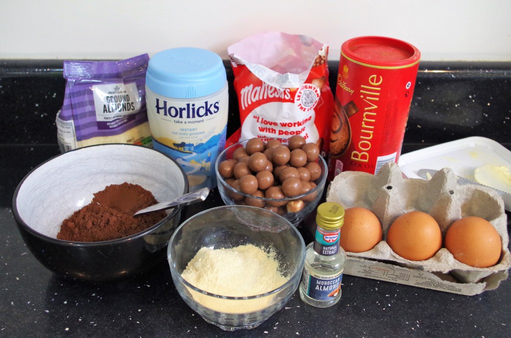 3. In another bowl, mix together the cocoa powder, baking powder, flour, malt powder, salt and ground almonds.