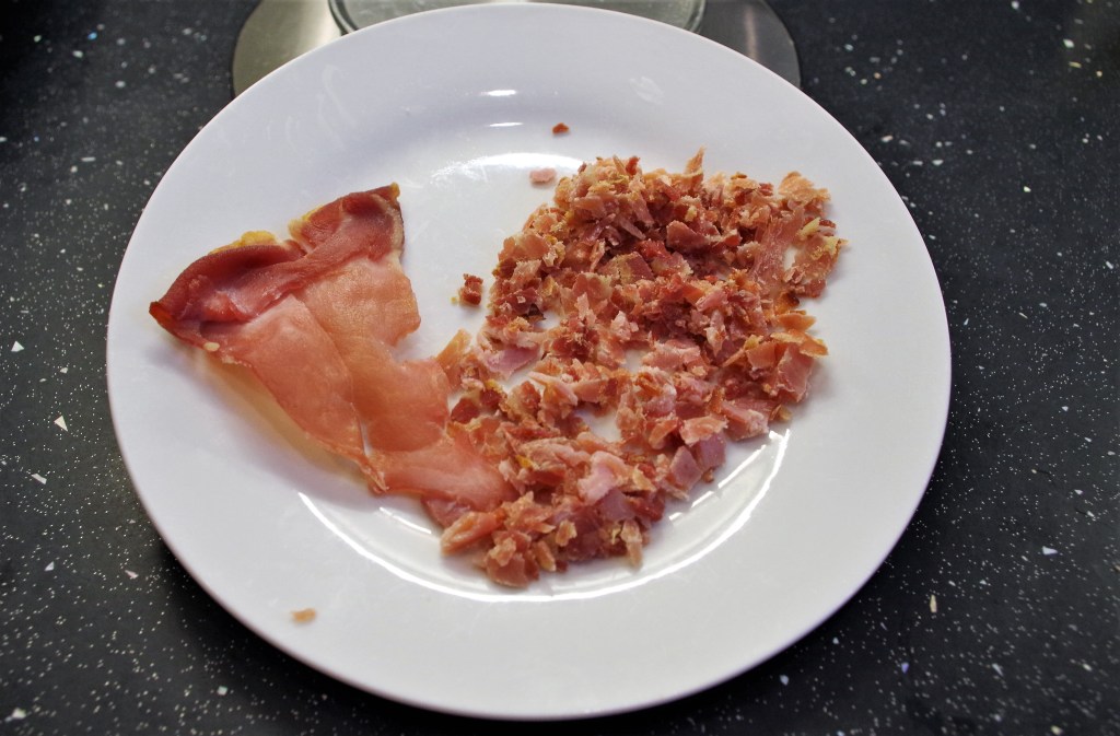 - About 15 – 30g cooked, crispy bacon, cut small*