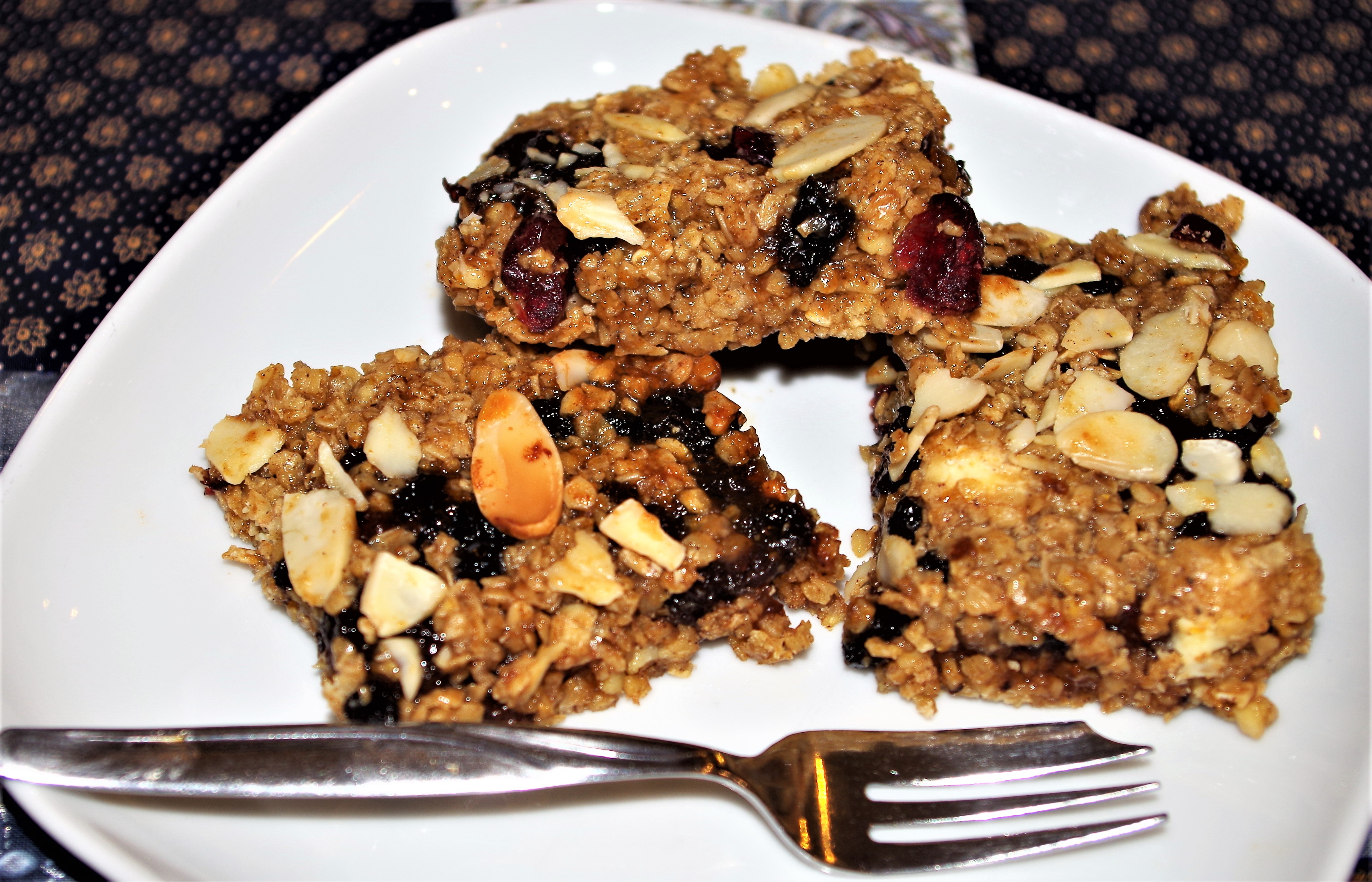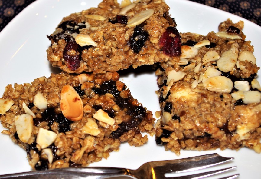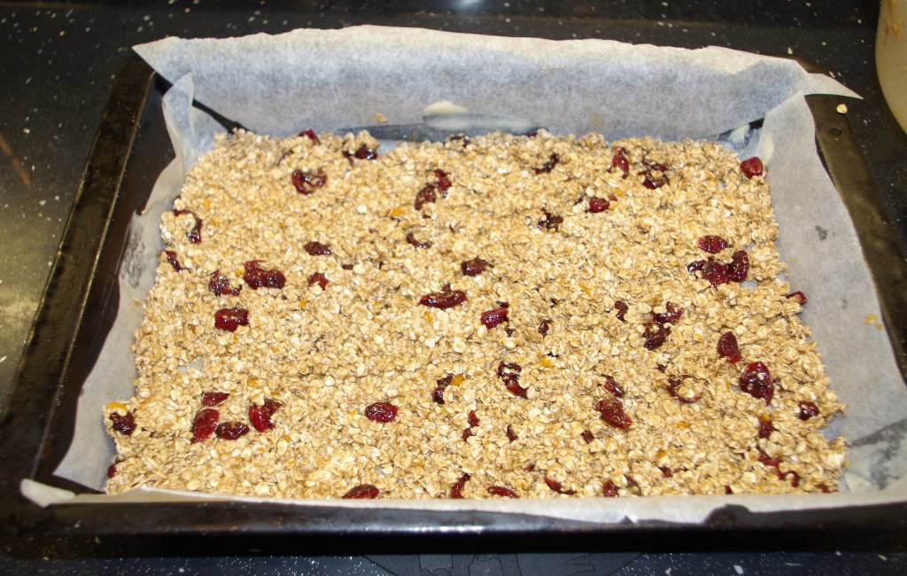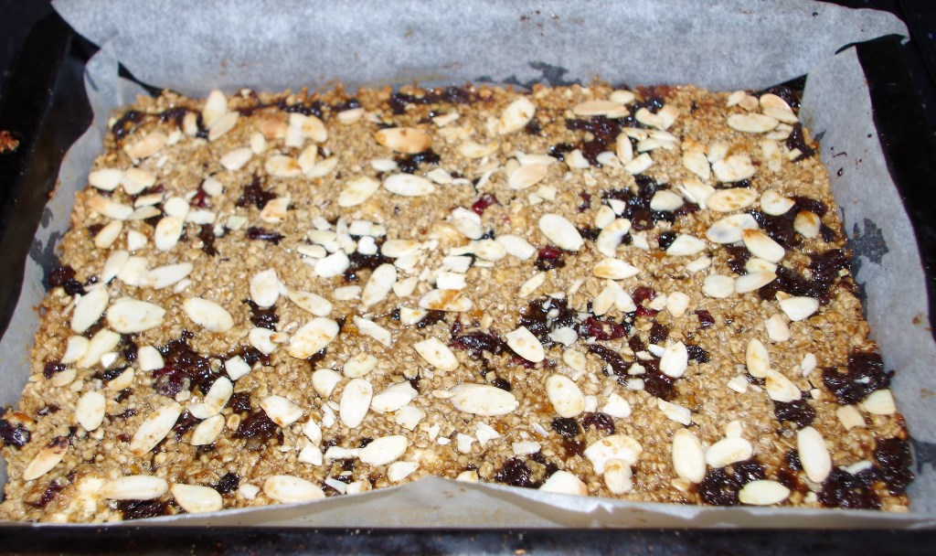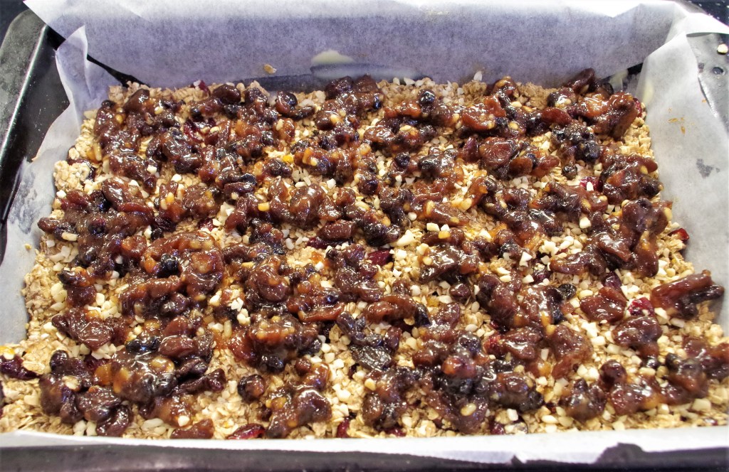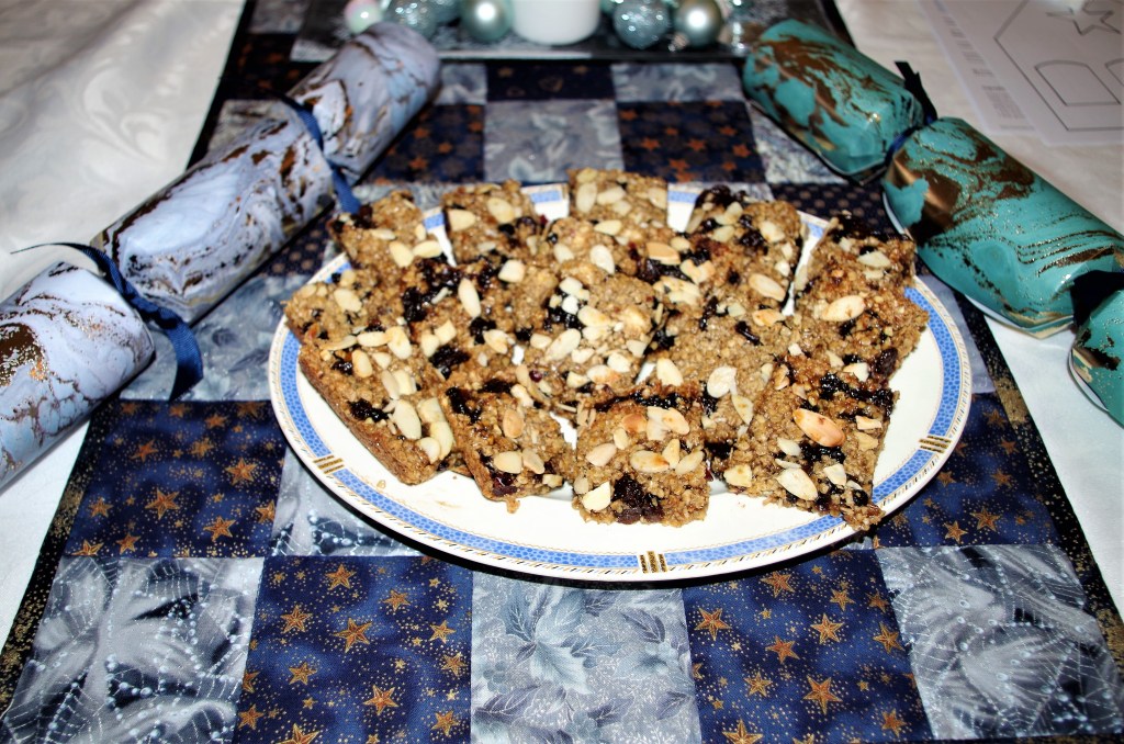 Flapjacks must be among the quickest, easiest and tastiest bakes going. This one has a few more ingredients than most, to give a definite taste of Christmas. These are ideal to have “at hand” when friends or family or neighbours call in.